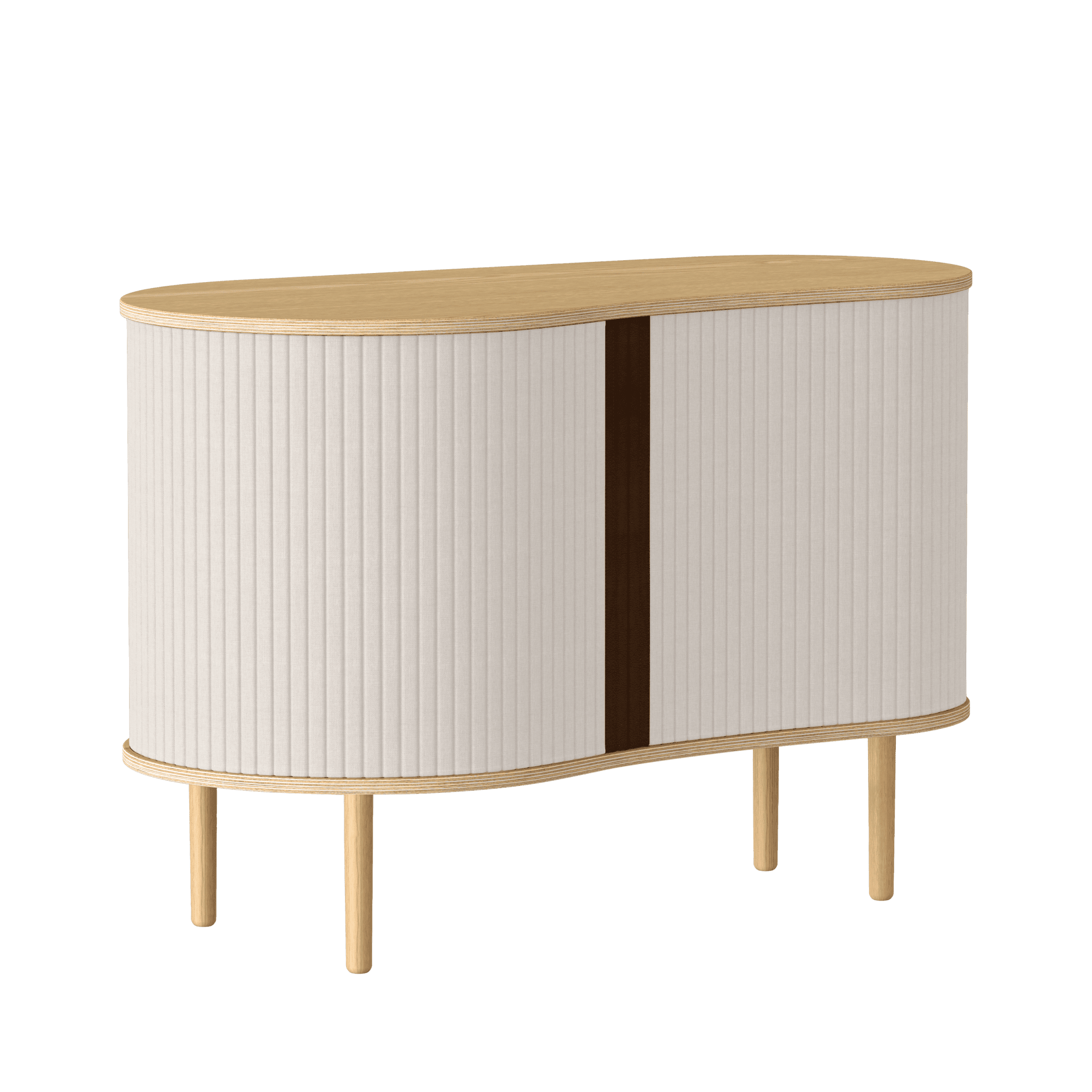 De commode is beschikbaar in drie opvallende kleuren: eiken, donker eiken en zwart eiken, met jaloezieën die verkrijgbaar zijn in zorgvuldig geselecteerde tinten van de stof Horizons, die volledig uit gerecycled materiaal bestaat. Belangrijk is dat de jaloezieën verwisselbaar zijn, wat betekent dat u ze gemakkelijk zelf kunt veranderen, waardoor u het meubel een nieuwe uitstraling kunt geven en het ontwerp kunt verfrissen zonder een geheel nieuw meubel te hoeven kopen. Hierdoor bespaart u niet alleen wereldwijde hulpbronnen, maar verlengt u ook de levensduur van het meubel.