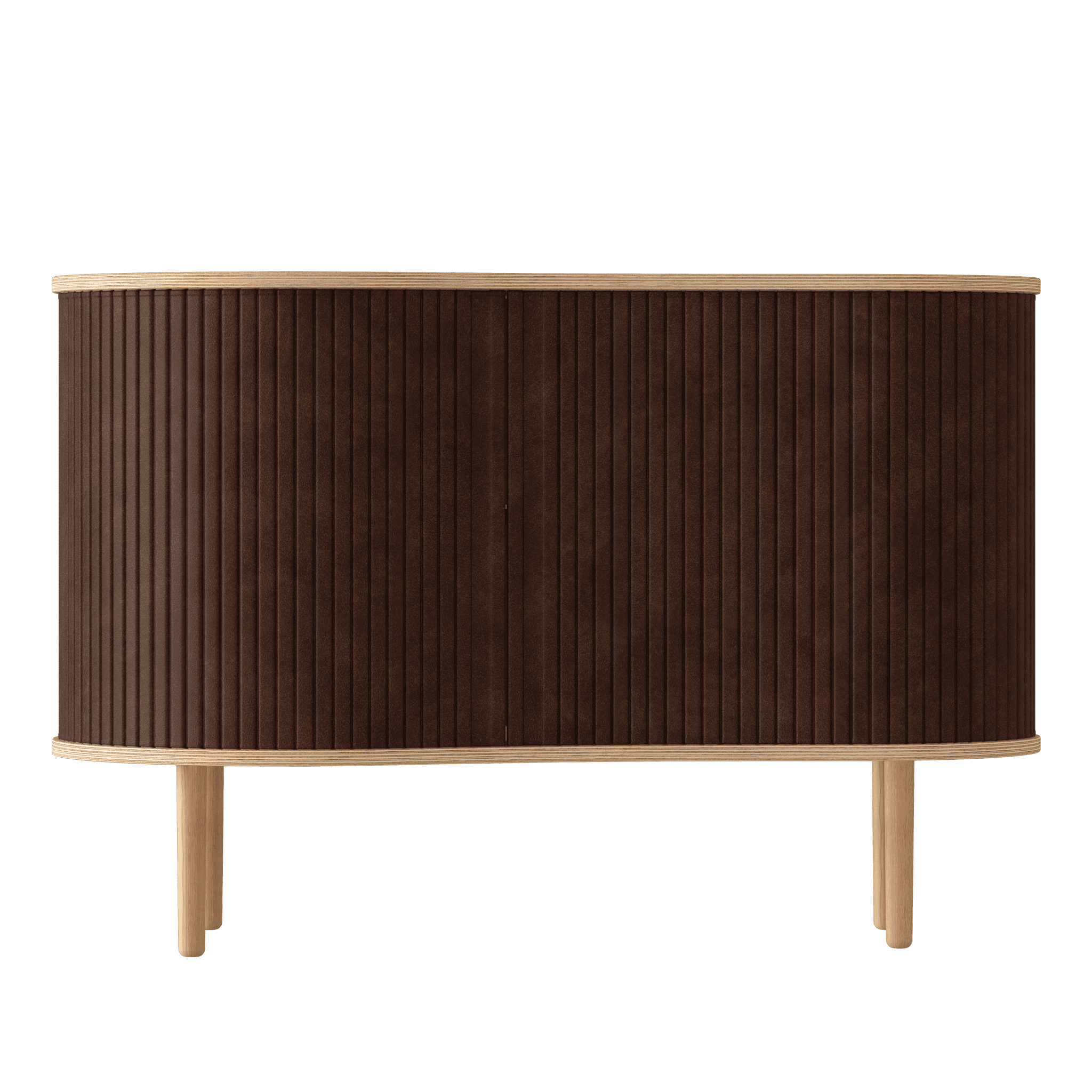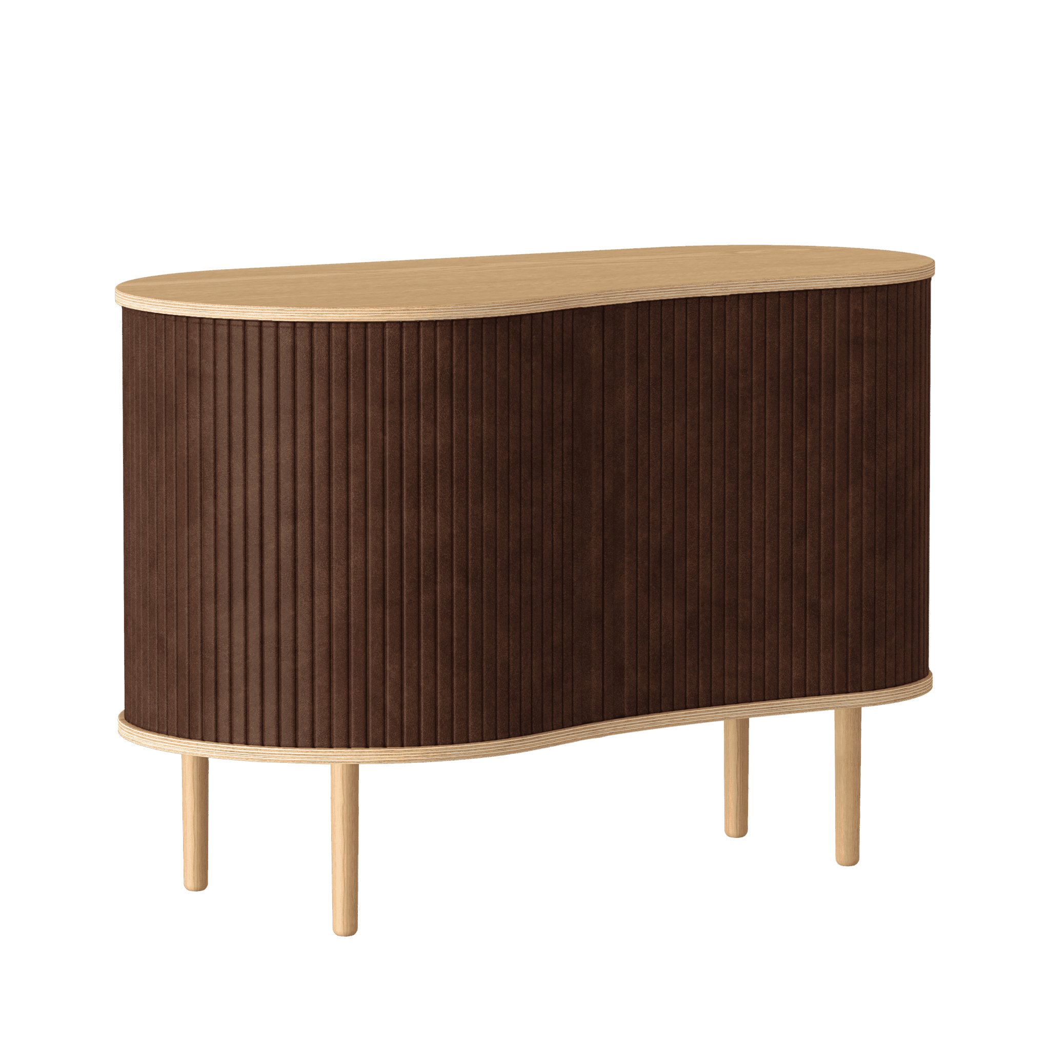 De commode is beschikbaar in drie opvallende kleuren: eiken, donker eiken en zwart eiken, met jaloezieën die verkrijgbaar zijn in zorgvuldig geselecteerde tinten van de stof Horizons, die volledig uit gerecycled materiaal bestaat. Belangrijk is dat de jaloezieën verwisselbaar zijn, wat betekent dat u ze gemakkelijk zelf kunt veranderen, waardoor u het meubel een nieuwe uitstraling kunt geven en het ontwerp kunt verfrissen zonder een geheel nieuw meubel te hoeven kopen. Hierdoor bespaart u niet alleen wereldwijde hulpbronnen, maar verlengt u ook de levensduur van het meubel.