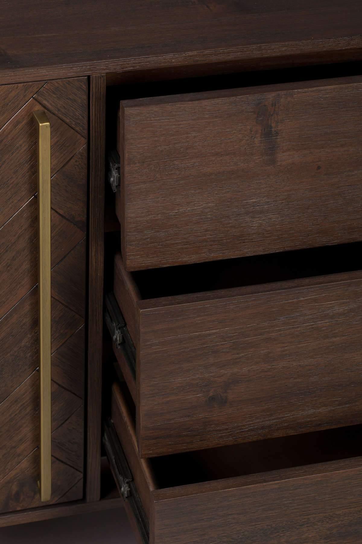 Class Commode is een uniek element dat elegantie en minimalisme combineert. De Class collectie is vervaardigd uit hoogwaardig MDF en fineer van acaciahout. Het kenmerkende visgraatpatroon geeft de commode een klassieke en moderne uitstraling.