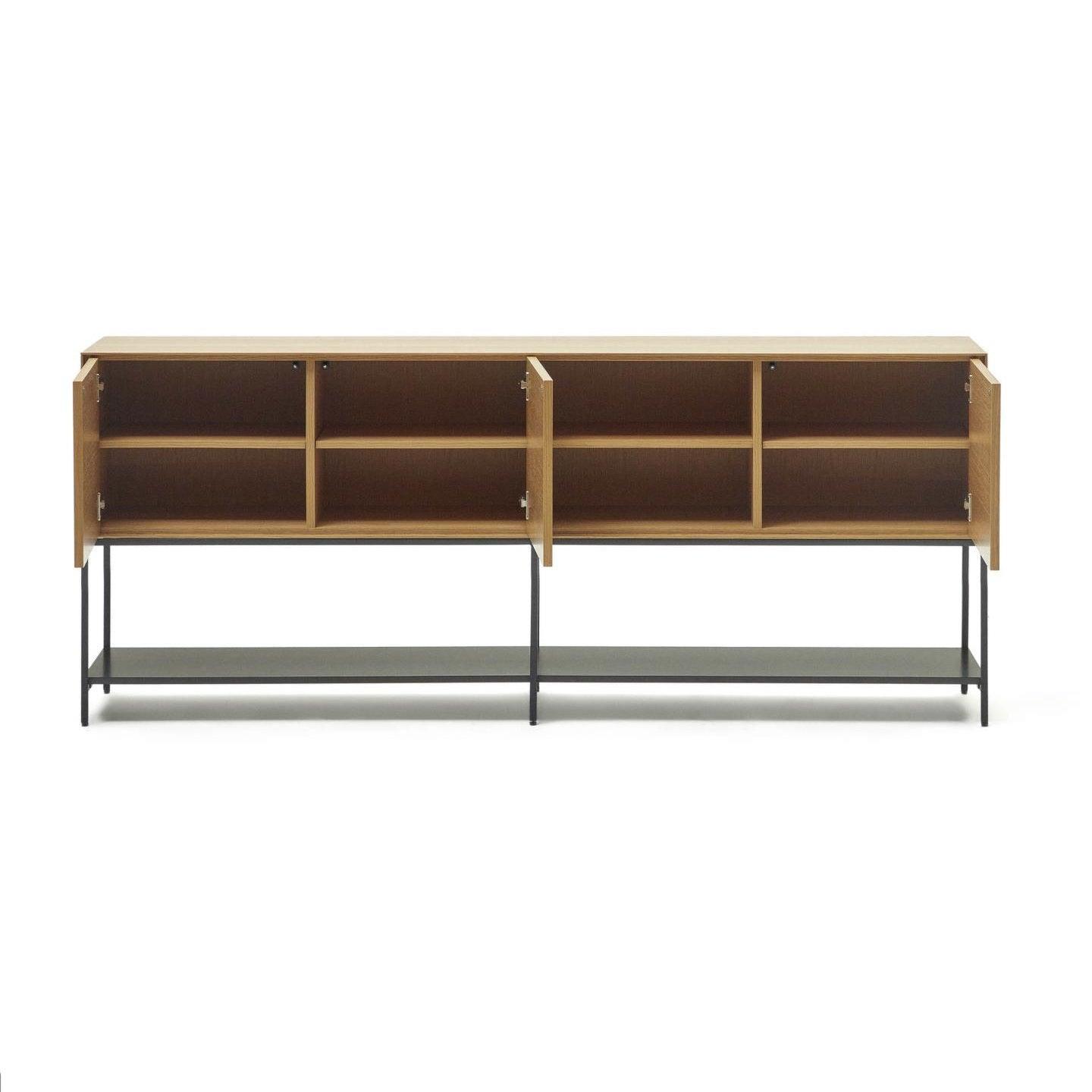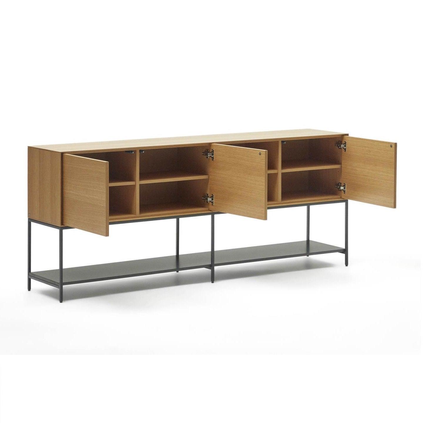 Commode Vedrana, ontworpen door het ervaren ontwerpteam van La Forma, vertegenwoordigt een perfecte harmonie tussen eikenfineer en staal, en creëert een unieke combinatie van functionaliteit en esthetiek. Deze unieke combinatie van materialen zorgt ervoor dat Vedrana perfect past in verschillende soorten huizen en interieurstijlen, waarbij de elegantie en moderniteit ervan wordt benadrukt.