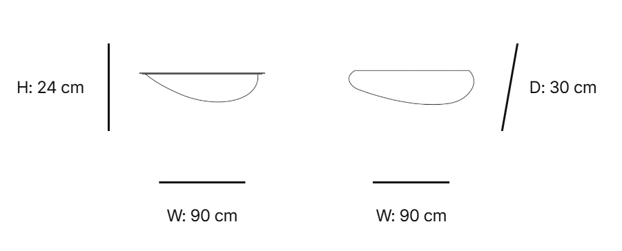 Aan de muur bevestigd, is Huba perfect voor smalle ruimtes – in hallen, vestibules of gangen. Het vormt een esthetische aanvulling op de spiegelachtige sculpturen van Zieta Studio, waardoor er een samenhangende formele dialoog ontstaat. Dit is een object dat kan functioneren als console, plank of puur decoratieve wandsculptuur.