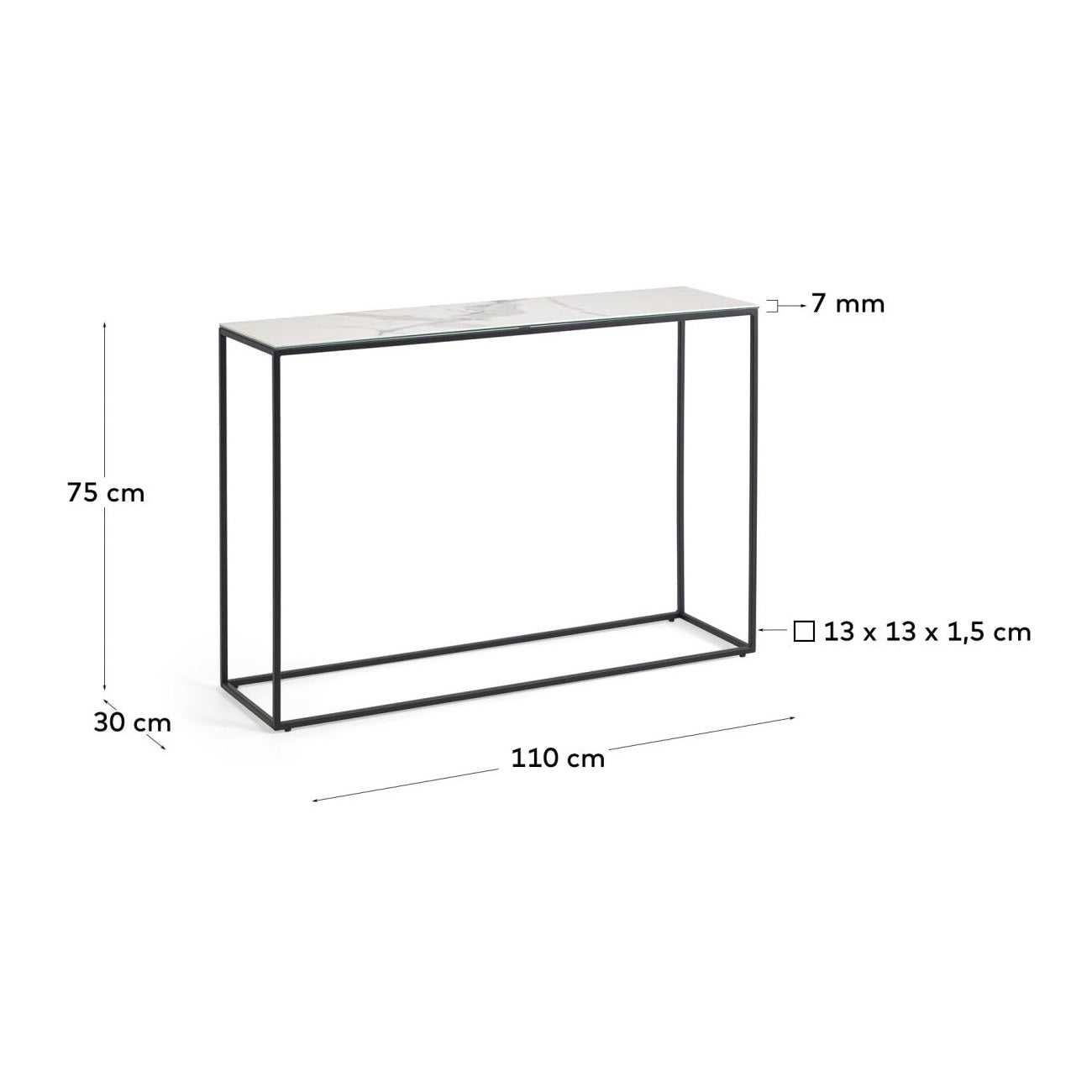 Het keramische blad wit van de console Rewena is een symbool van verfijnde smaak en esthetiek. De keuze voor dit exclusieve materiaal voegt een uniek karakter toe aan de ruimte, terwijl het tegelijkertijd een duurzame en onderhoudsvriendelijke oppervlakte creëert. De stevige stalen constructie vormt niet alleen de basis, maar ook een subtiel contrast, waardoor er een balans ontstaat tussen moderniteit en stevigheid.