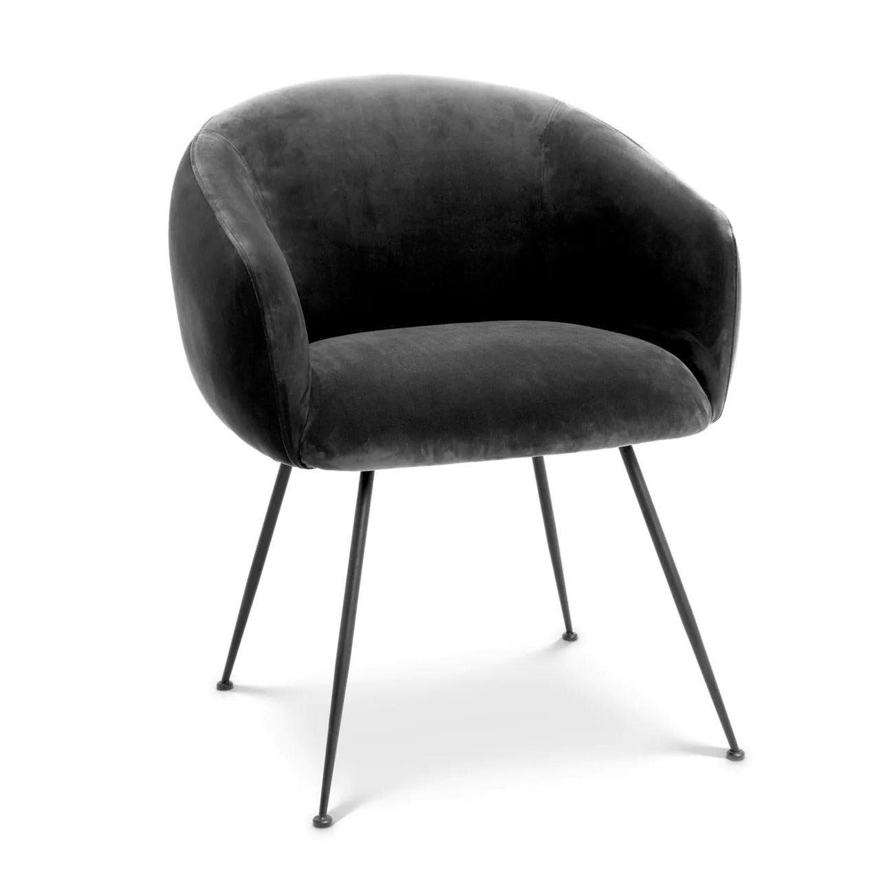 Elbury is een stoel die zeker de aandacht zal trekken. Zijn architectonische lijnen en tijdloze elegantie maken het een echte aanwinst voor elke eetkamer of keuken. De eenvoudige, maar verfijnde vorm van de stoel benadrukt zijn minimalistische karakter. De zitting en rugleuning van de stoel Elbury zijn bekleed met zwarte fluweel van het merk Savona. Dit luxe materiaal ziet er niet alleen uitzonderlijk uit, maar garandeert ook zitcomfort. Dankzij het perfect ontworpen frame en de stevige metalen poten in zwart, is de stoel niet alleen stabiel, maar ook uiterst duurzaam.