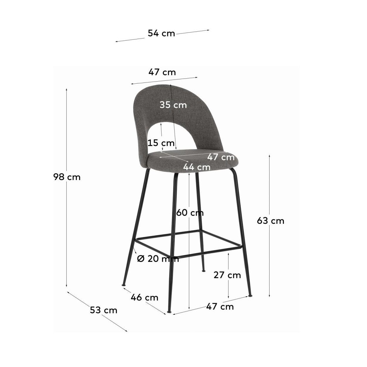 Barkruk MAHALIA donkergrijs