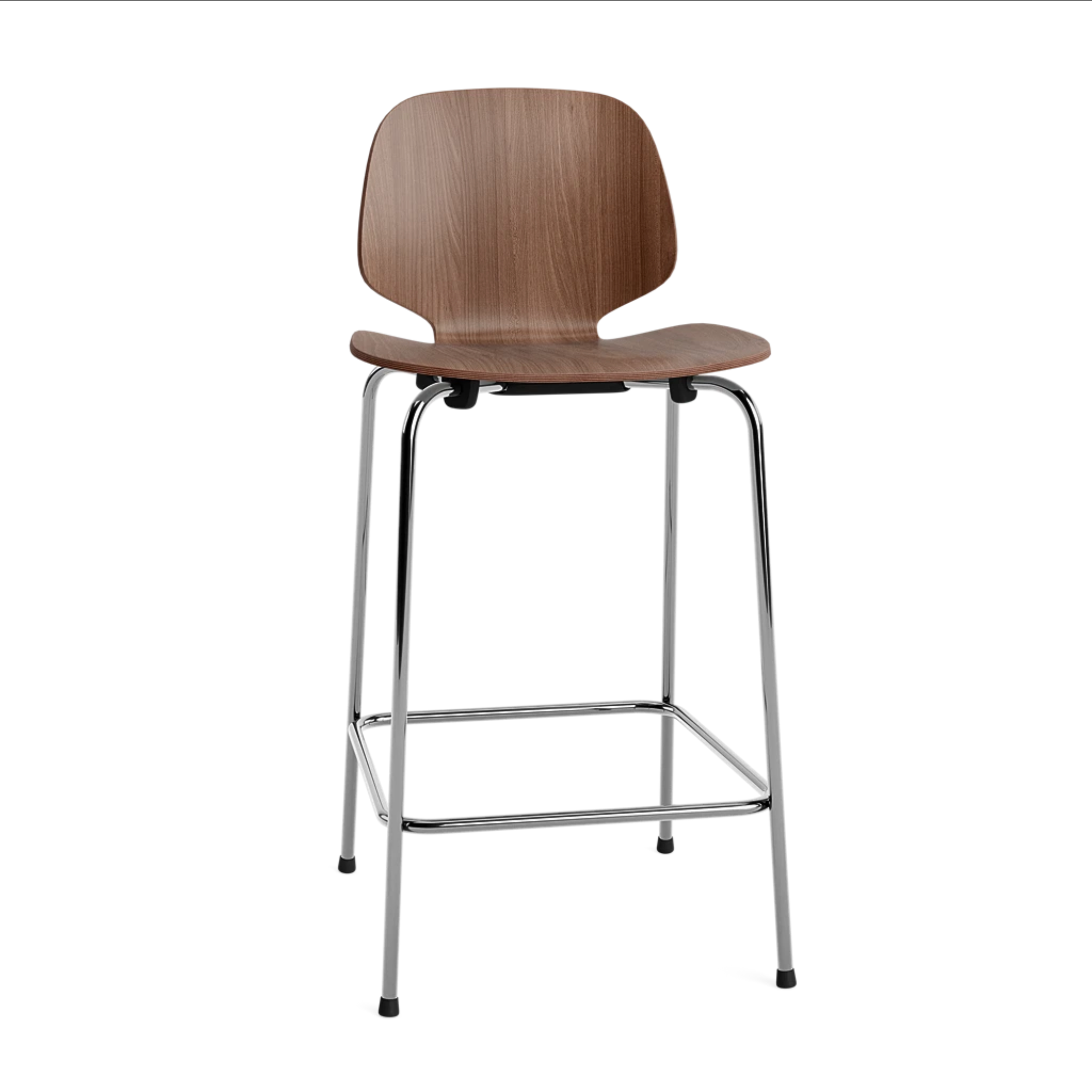 Barkruk MY notenhout met verchroomde voet