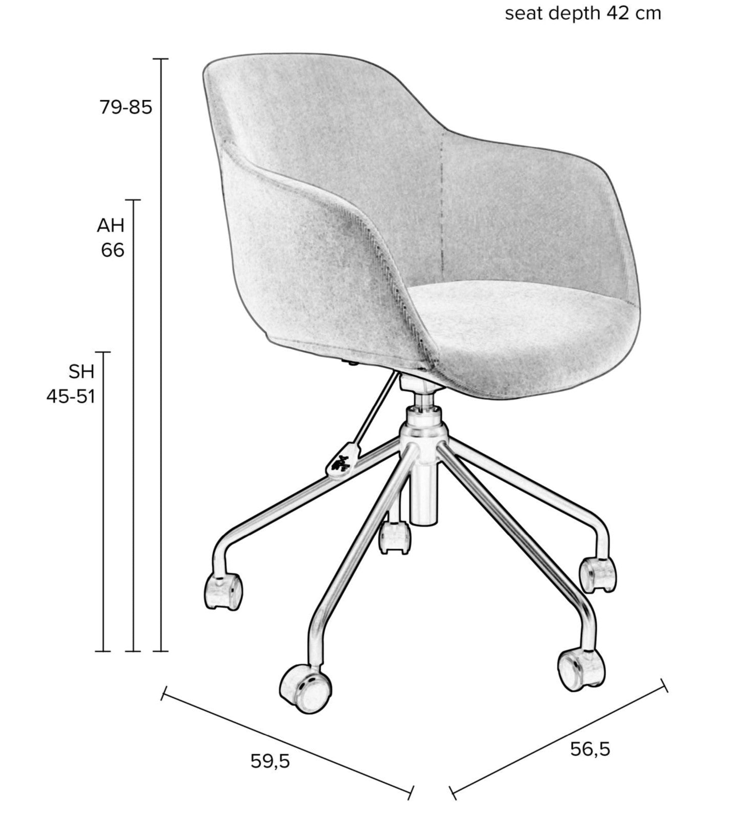 De kuipconstructie, samengesteld uit multiplex, PU-schuim en stof die lijkt op ribfluweel, biedt comfort en stijl. De vaste armleuningen zorgen voor een constante positie tijdens het werken, wat het comfort verhoogt. Junzo Rib is een aantrekkelijke keuze die functionaliteit met esthetiek verbindt.