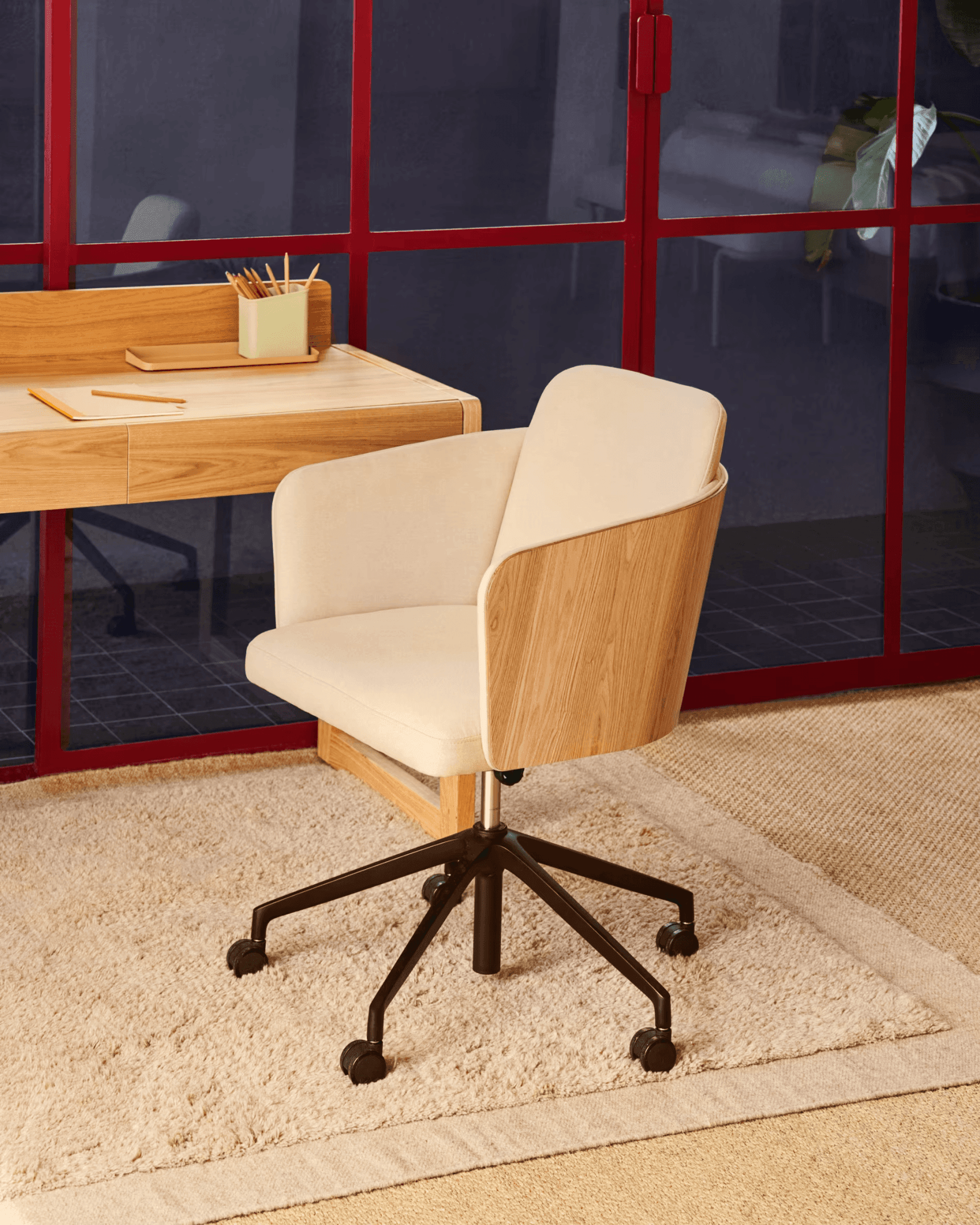 Matowa, czarna podstawa z aluminium i nogi krzesła nie tylko zapewniają stabilność i trwałość, ale także nadają mu nowoczesny i profesjonalny wygląd, który doskonale komponuje się z nowoczesnymi wnętrzami biurowymi.