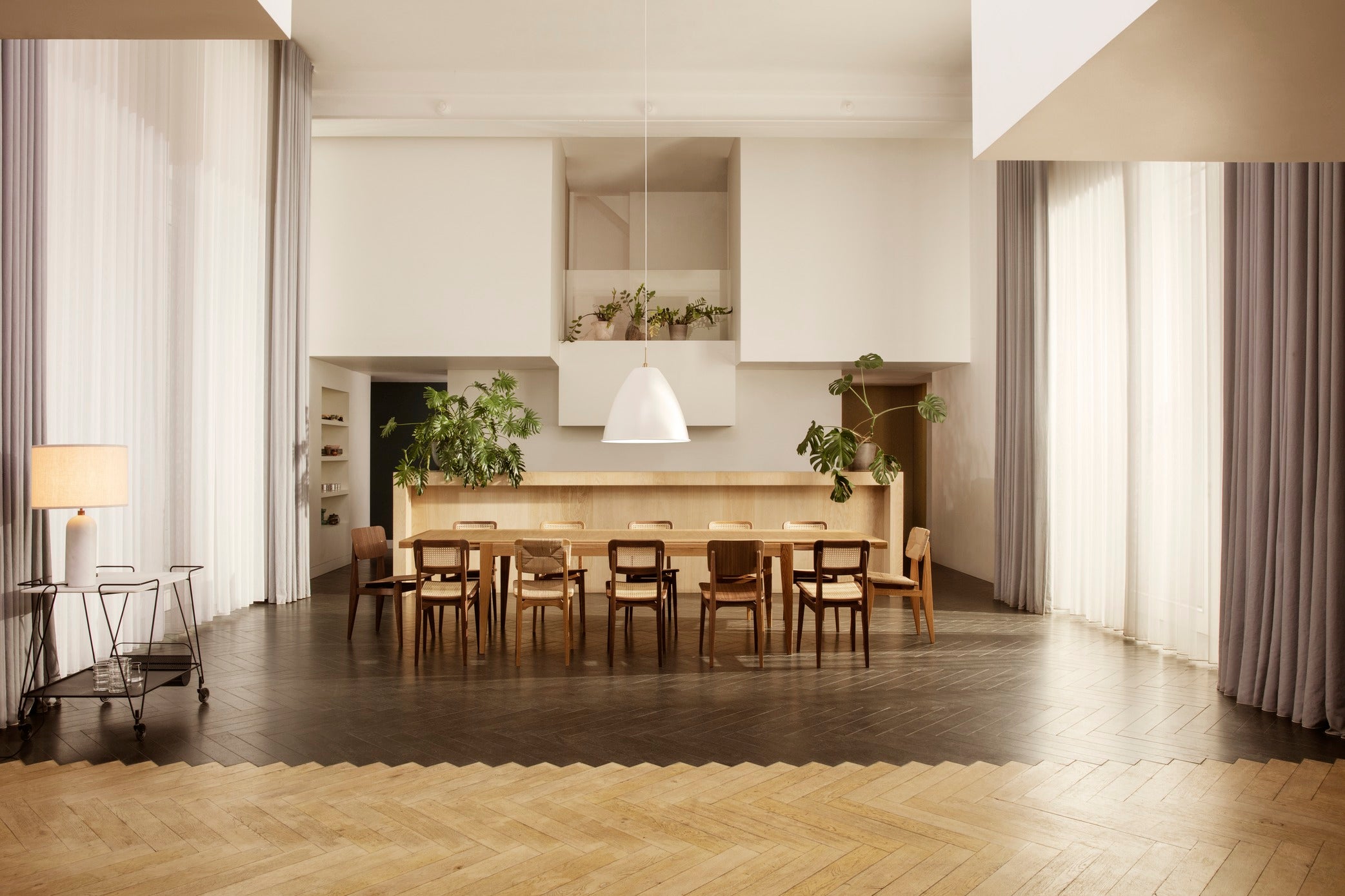 Charakterystyczne, mocno zarysowane nogi kontrastują z ażurową strukturą siedziska, nadając krzesłu subtelności przy zachowaniu jego solidnej konstrukcji. Dzięki wyważonym proporcjom i naturalnym materiałom, C-Chair doskonale odnajdzie się zarówno we wnętrzach klasycznych, jak i nowoczesnych — od jadalni po przestrzenie komercyjne.