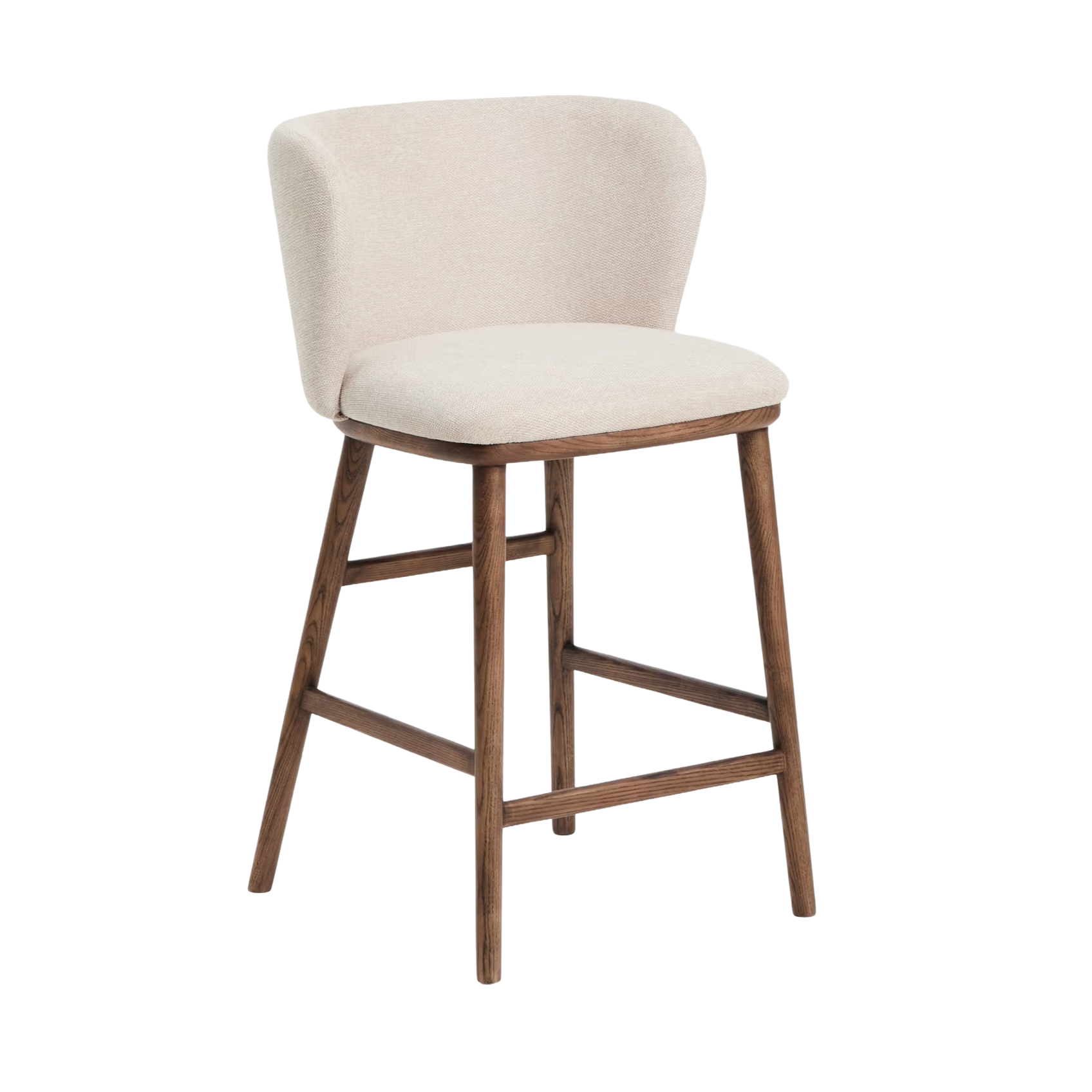 Barkruk CISELIA beige chenille met een donkere essen basis