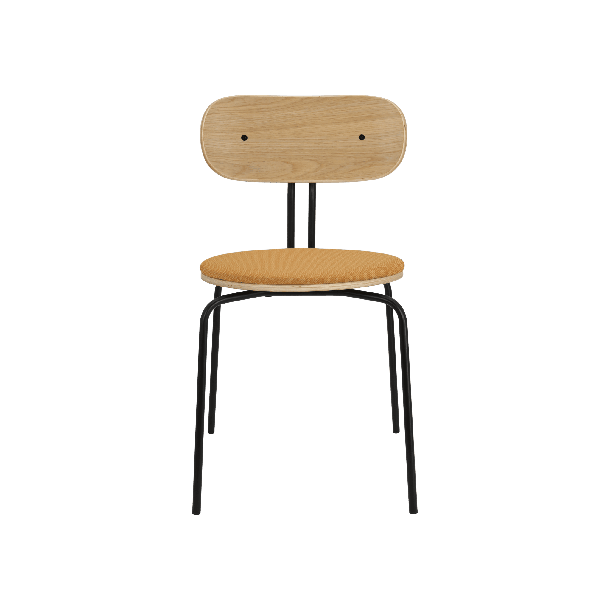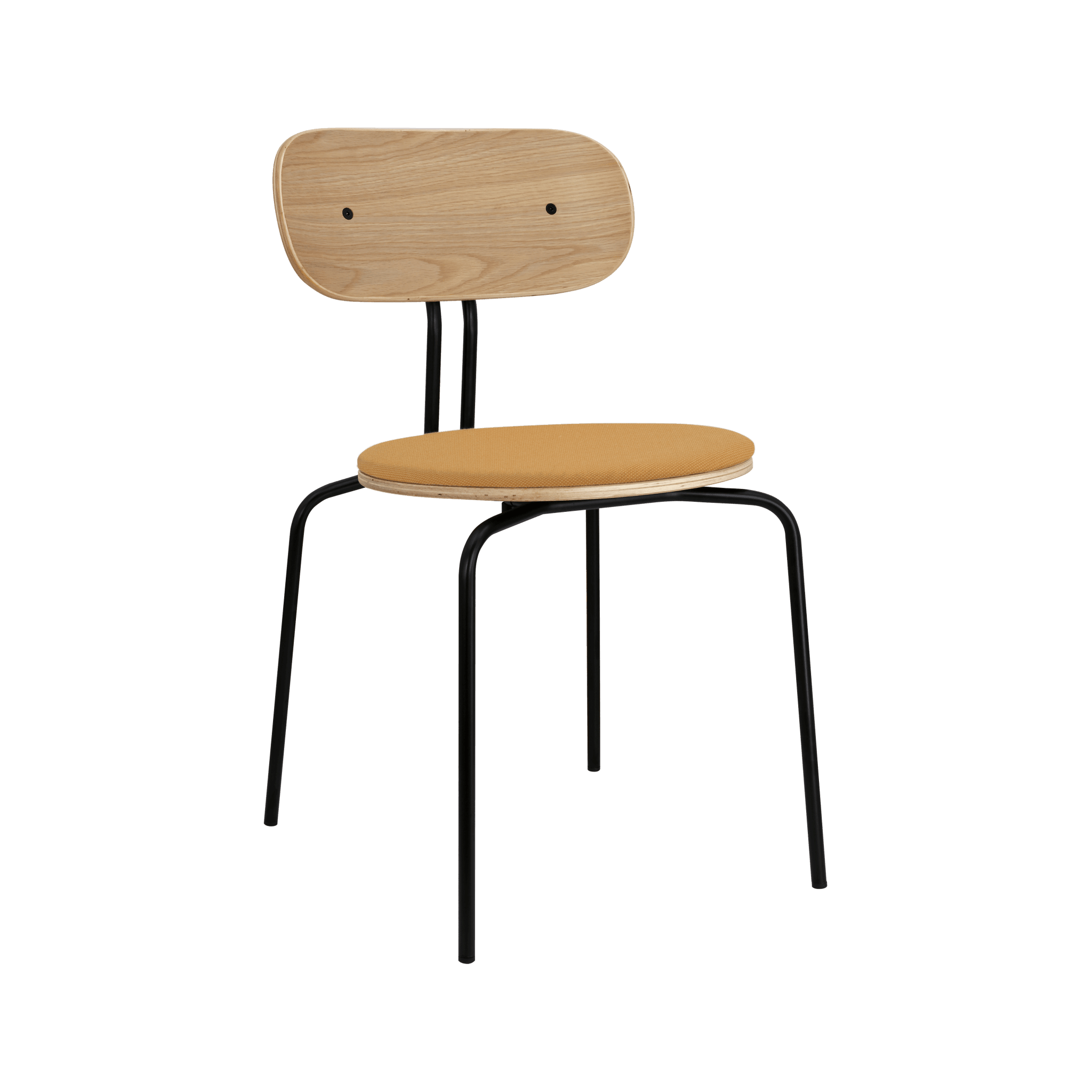 Stoel Curious is een elegante, lichte en minimalistische meubelstuk, gemaakt van eikenfineer. Het is beschikbaar met messing of zwarte poten, en de optionele zitkussen biedt extra comfort. U kunt kiezen uit 17 kleuren van de Horizons-stof, die voor 100% uit gerecycled materiaal is vervaardigd, evenals in een bruine of witte tint van de Teddy Bear-stof.