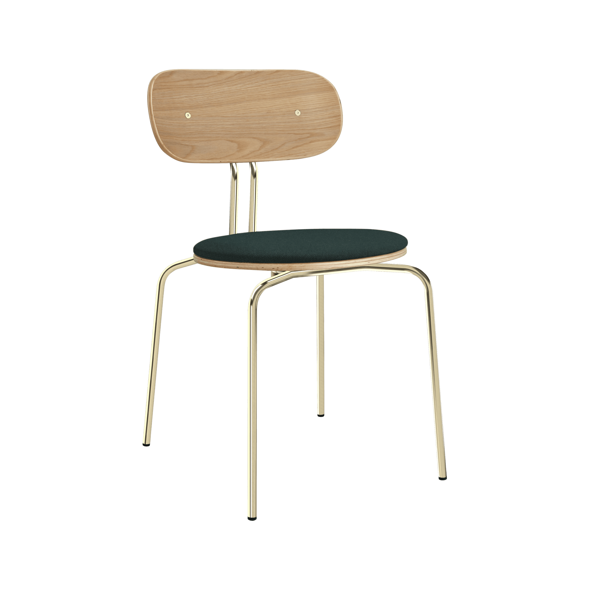 Stoel Curious is een elegante, lichte en minimalistische meubelstuk, gemaakt van eikenfineer. Het is beschikbaar met messing of zwarte poten, en de optionele zitkussen biedt extra comfort. U kunt kiezen uit 17 kleuren van de Horizons-stof, die voor 100% uit gerecycled materiaal is vervaardigd, evenals in een bruine of witte tint van de Teddy Bear-stof.