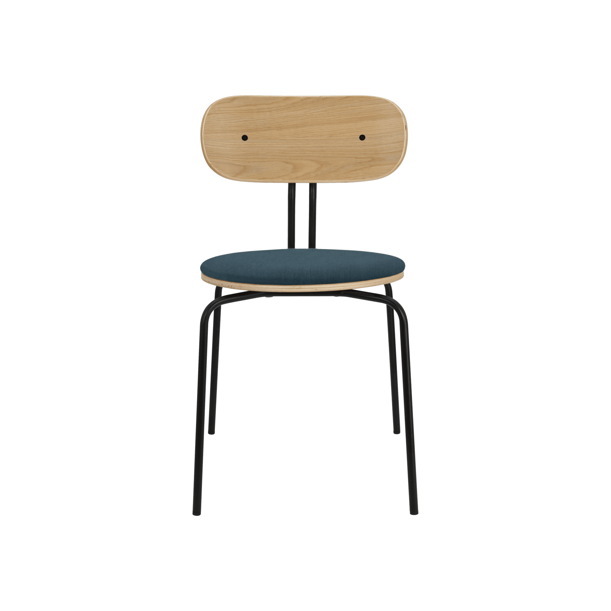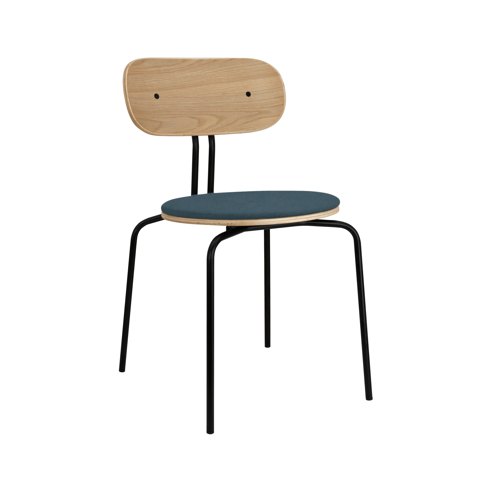 Stoel Curious is een elegante, lichte en minimalistische meubelstuk, gemaakt van eikenfineer. Het is beschikbaar met messing of zwarte poten, en de optionele zitkussen biedt extra comfort. U kunt kiezen uit 17 kleuren van de Horizons-stof, die voor 100% uit gerecycled materiaal is vervaardigd, evenals in een bruine of witte tint van de Teddy Bear-stof.