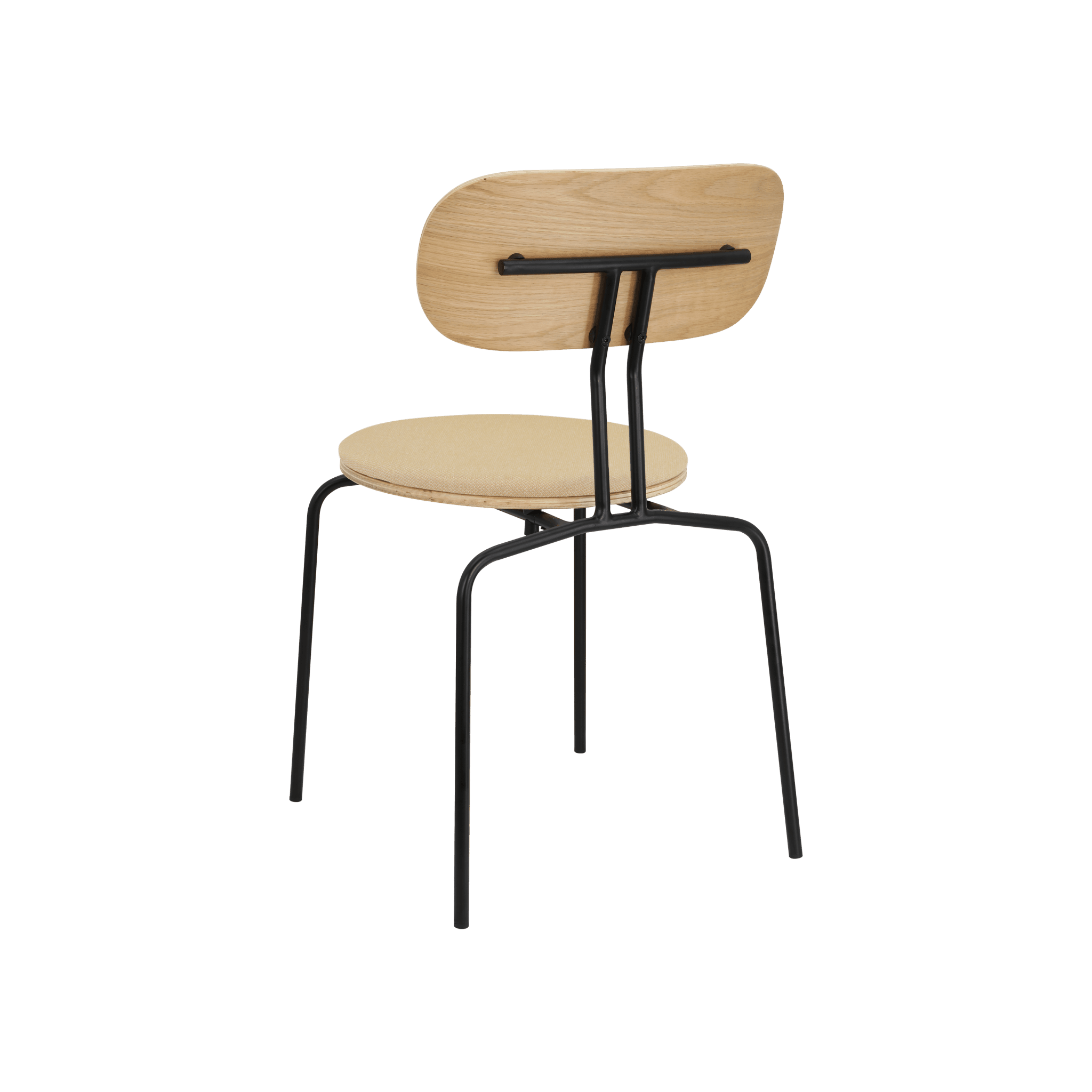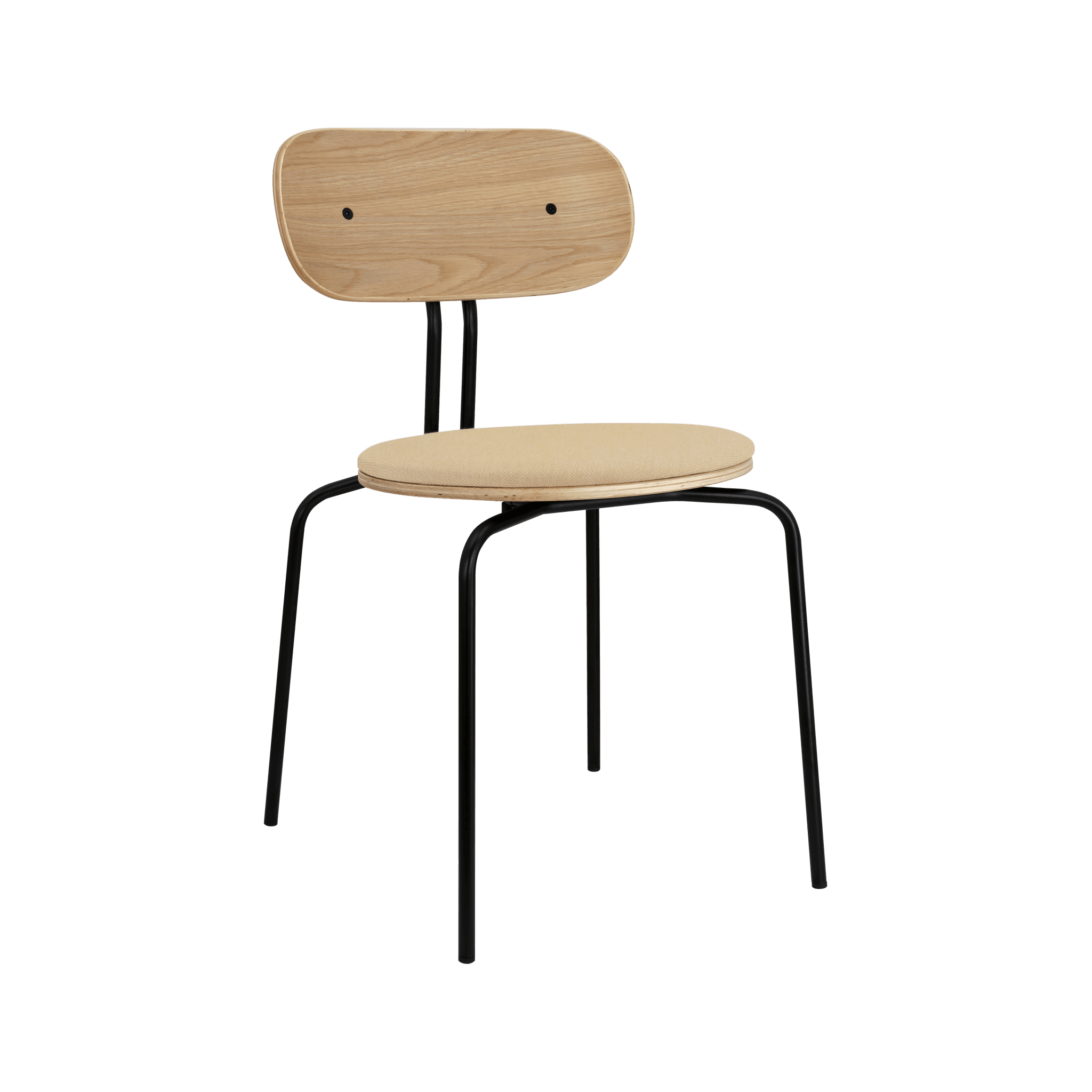 Stoel Curious is een elegante, lichte en minimalistische meubelstuk, gemaakt van eikenfineer. Het is beschikbaar met messing of zwarte poten, en de optionele zitkussen biedt extra comfort. U kunt kiezen uit 17 kleuren van de Horizons-stof, die voor 100% uit gerecycled materiaal is vervaardigd, evenals in een bruine of witte tint van de Teddy Bear-stof.