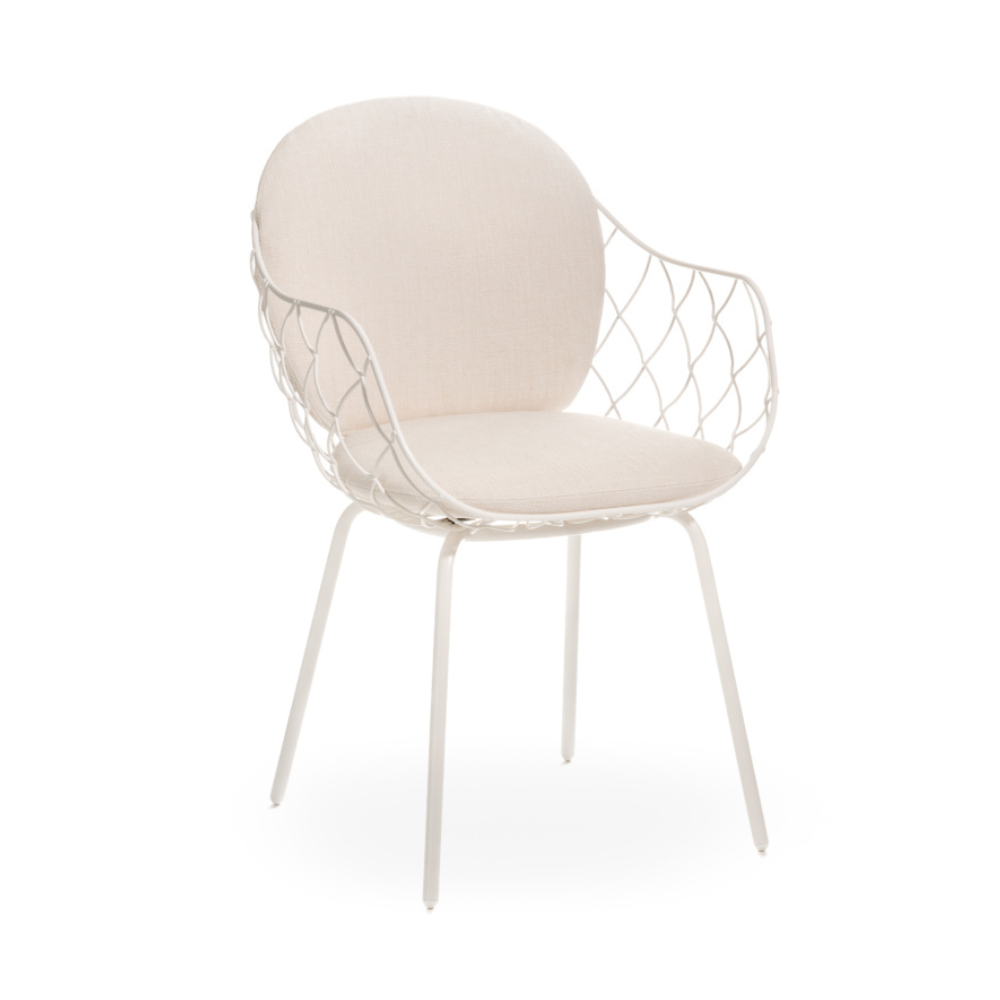 Het zachte, gestoffeerde zitvlak en rugleuning verhogen het gebruikscomfort, waardoor het stoel een ideale plek is om buiten te ontspannen. Dankzij zijn universele vorm is Piña ook geschikt voor binneninrichtingen – in de eetkamer, woonkamer of hal – en past het gemakkelijk bij zowel moderne als meer klassieke inrichtingselementen. Dit meubel combineert duurzaamheid, comfort en tijdloze esthetiek.