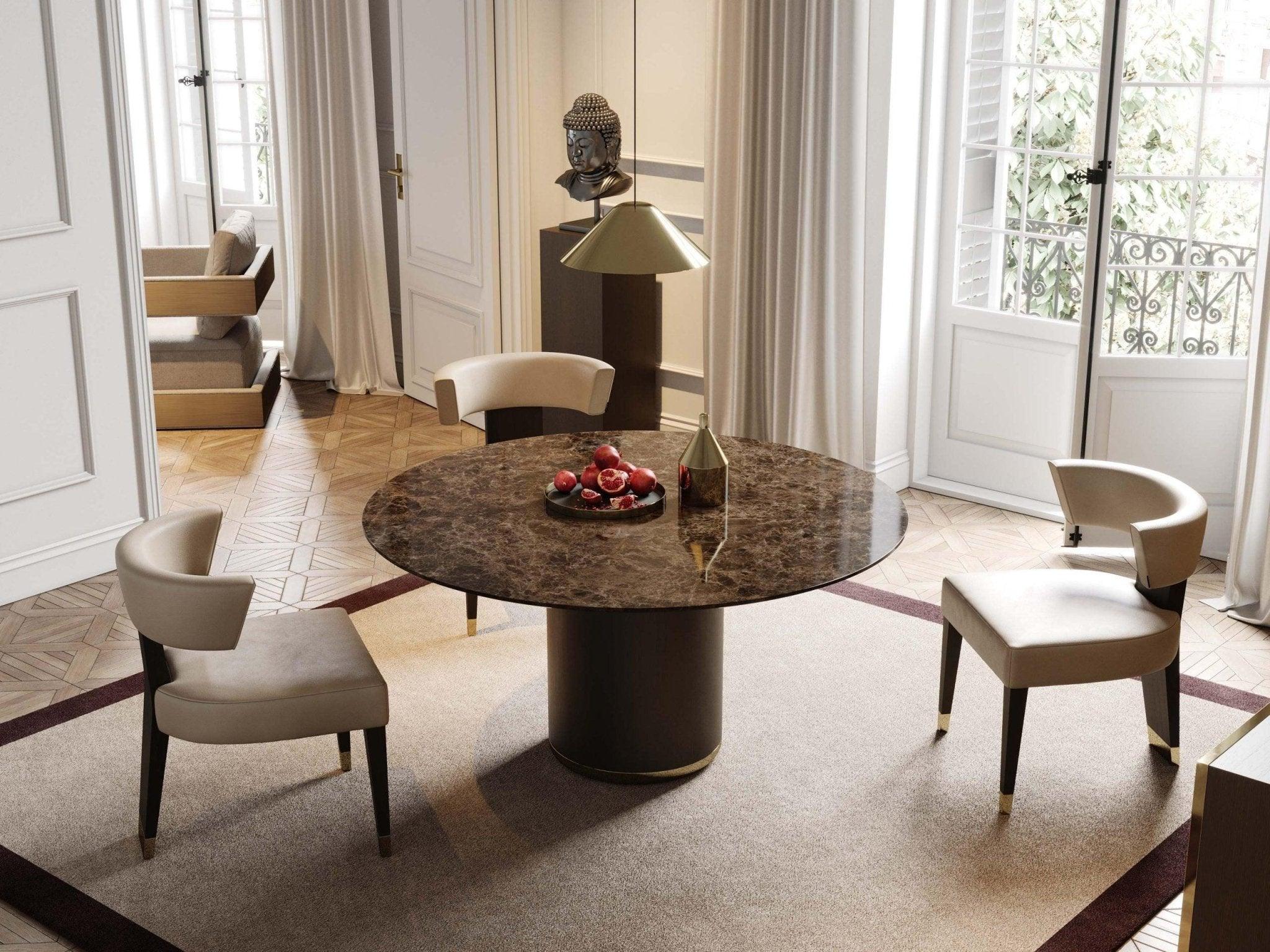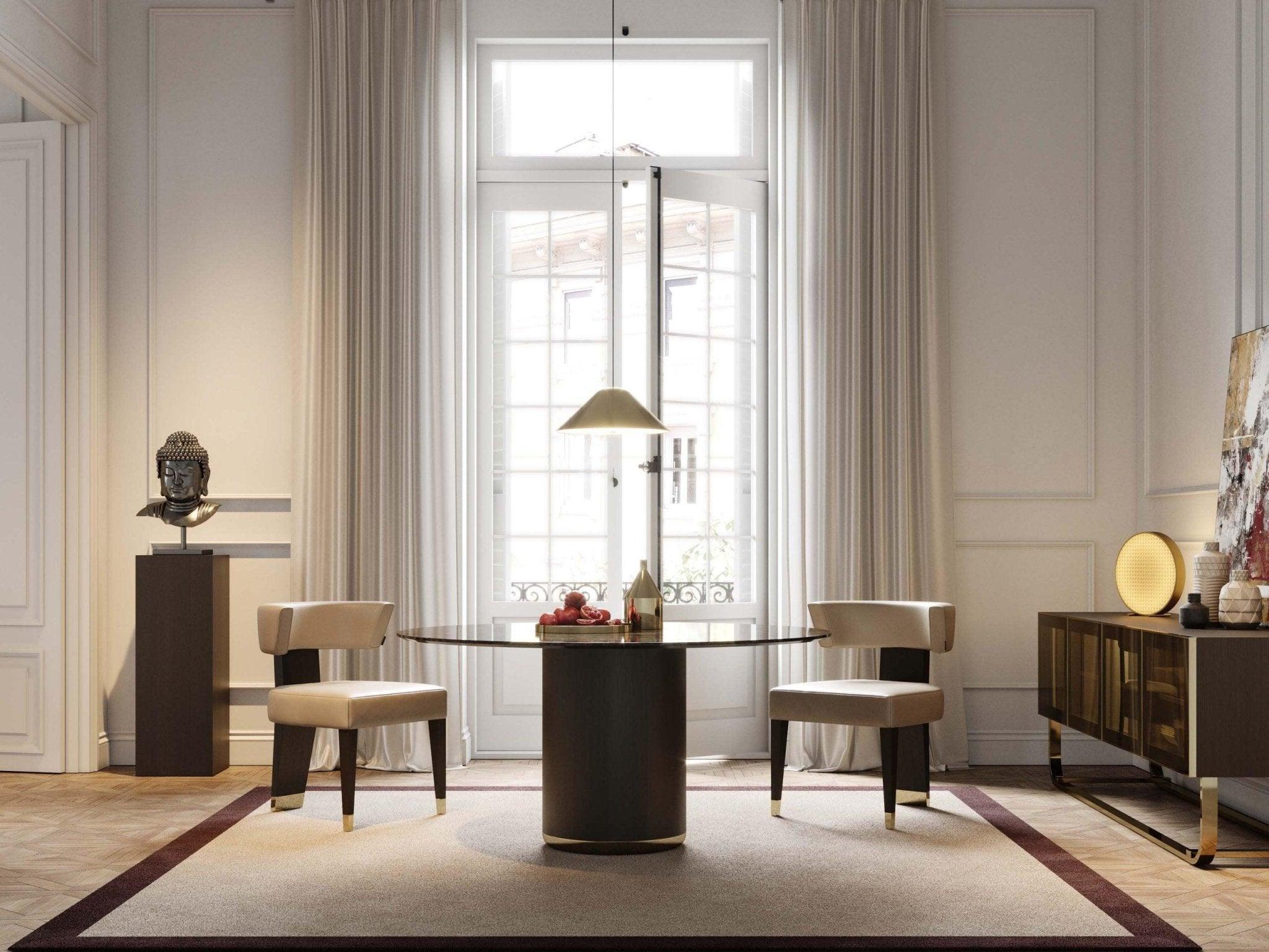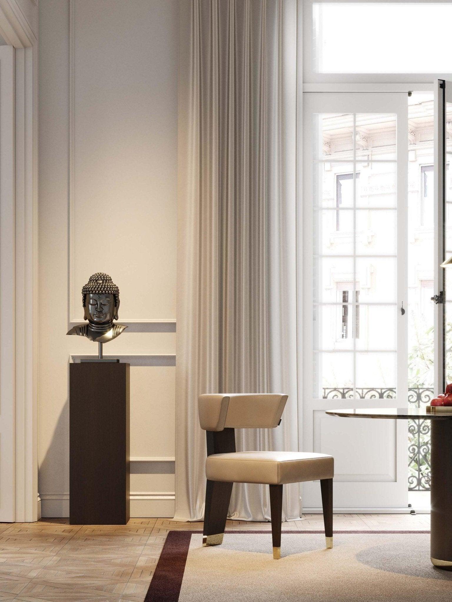 Stoel Her II, een creatie van een exclusief ontwerp, bevestigt zijn eigen essentie, zowel qua ontwerp als qua afwerkingsmaterialen. Het is het ideale element dat uw eetkamer een moderne en verfijnde toon geeft. Messing details geven deze stoel een unieke toets van verfijning.