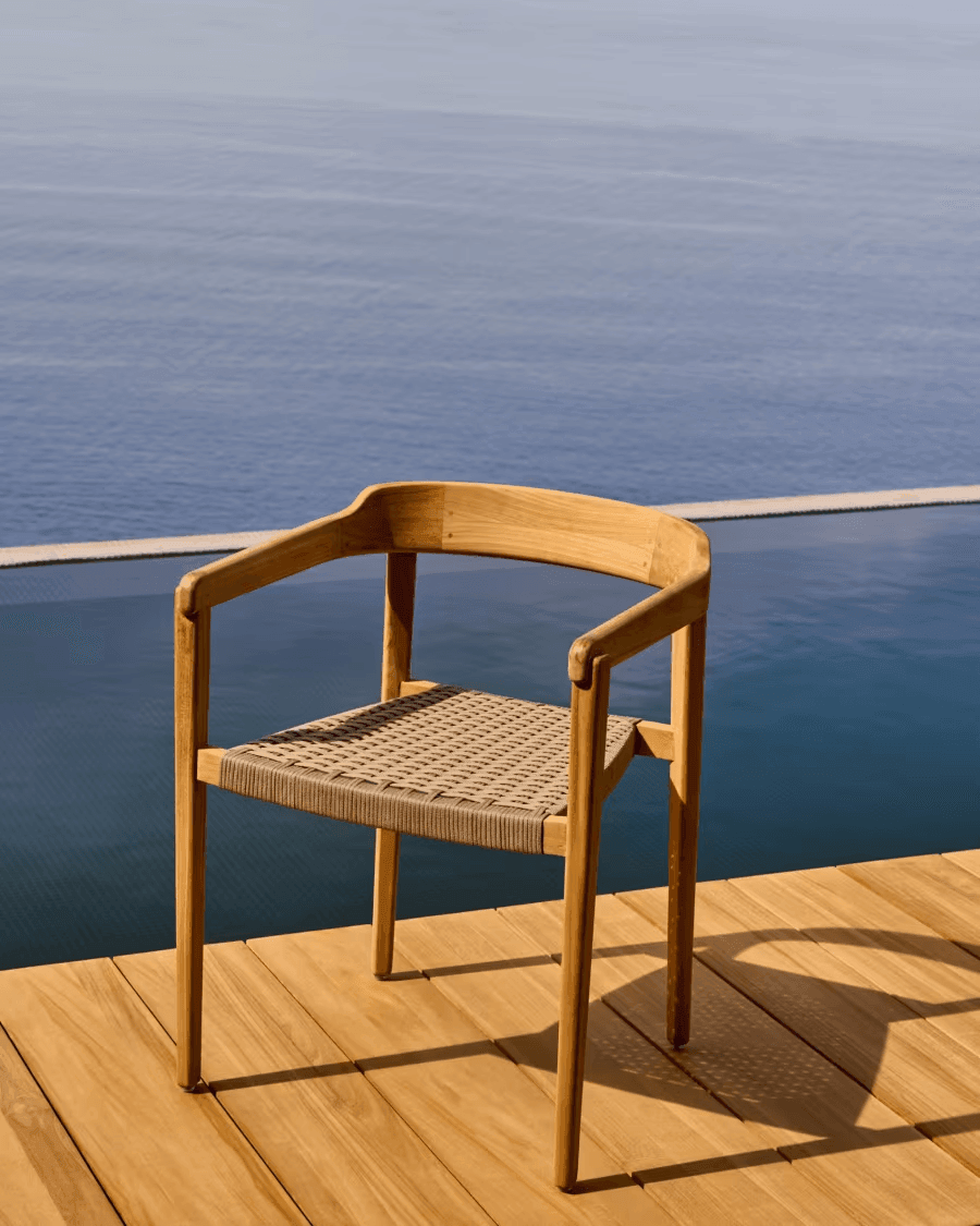 ICARO lite stoel van teakhout met beige afwerking