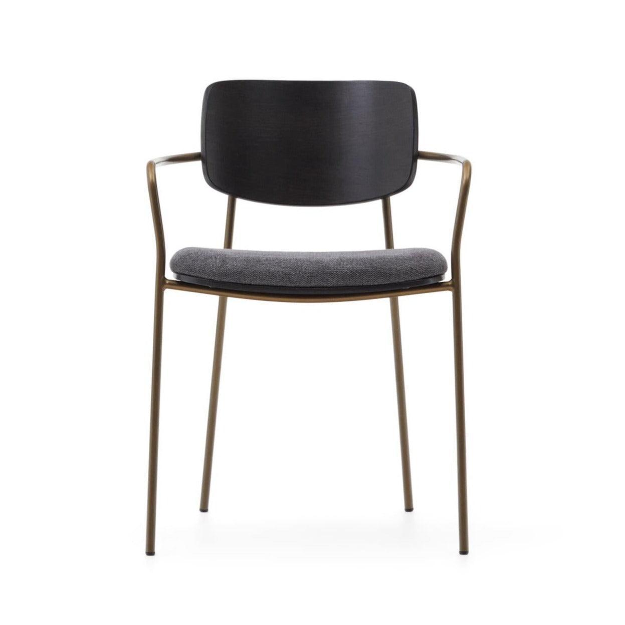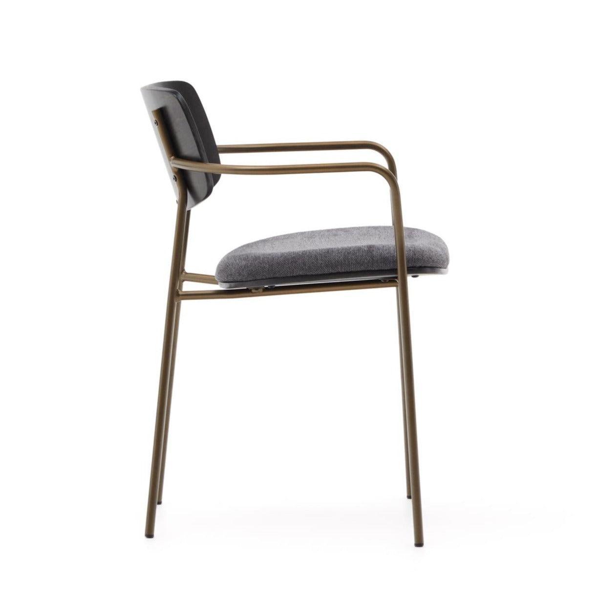 Stoel MAUREEN donker essenhout met bronzen basis