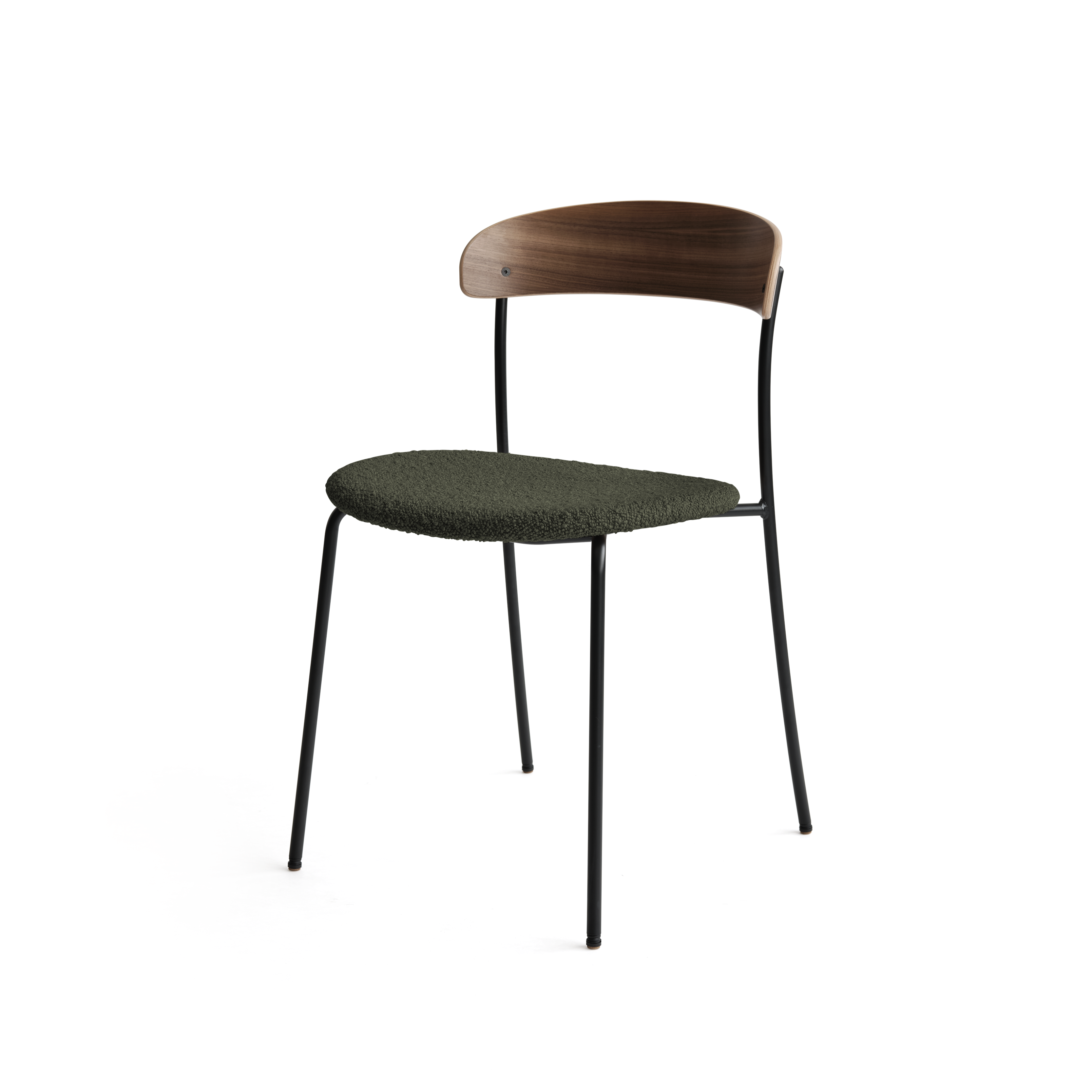 Gestoffeerde stoel Missing met notenhouten fineer is een combinatie van verfijnd design en functionaliteit. Zijn subtiele, maar uitgesproken vorm zorgt ervoor dat hij perfect past in zowel woonruimtes als commerciële omgevingen, en voegt tijdloze elegantie en een uniek karakter toe.