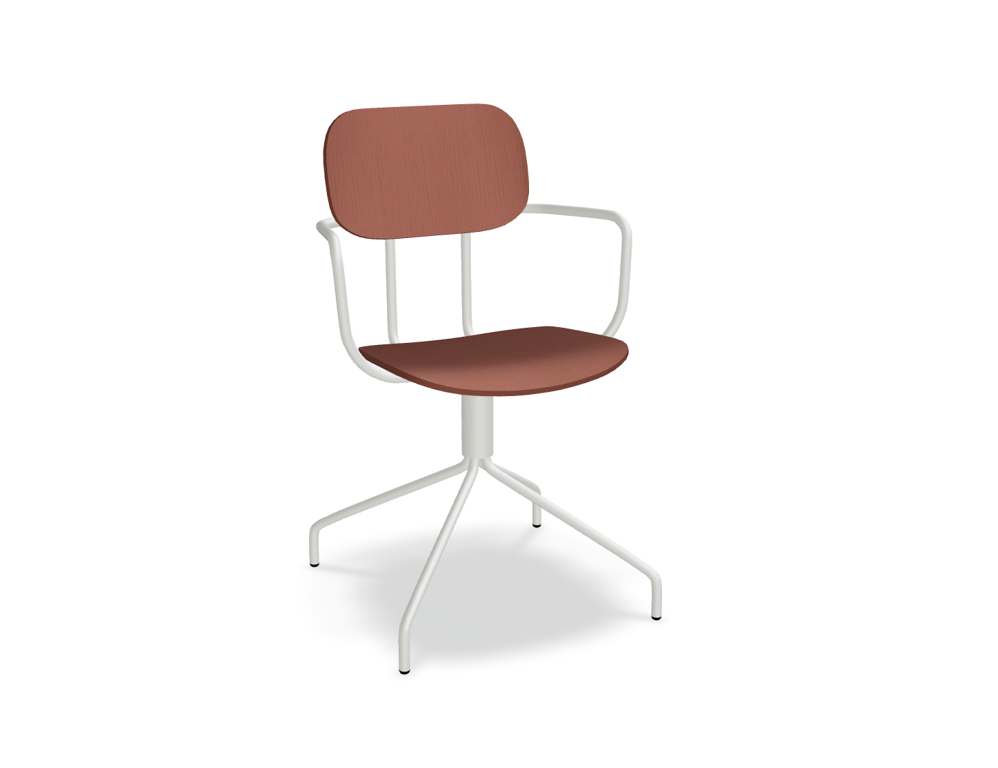 Draaitstoel New School is een moderne herinterpretatie van de klassieke vorm van de schoolstoel, die een breed scala aan configuraties biedt die zijn aangepast aan verschillende kantoorruimtes. In de versie met multiplex en een draaivoet is het een praktische en stijlvolle aanvulling op elk interieur. De zitting die 360° draait, maakt het gemakkelijk om op te staan van de tafel en om je binnen de werkplek te verplaatsen, terwijl optionele armleuningen het comfort verder verhogen.