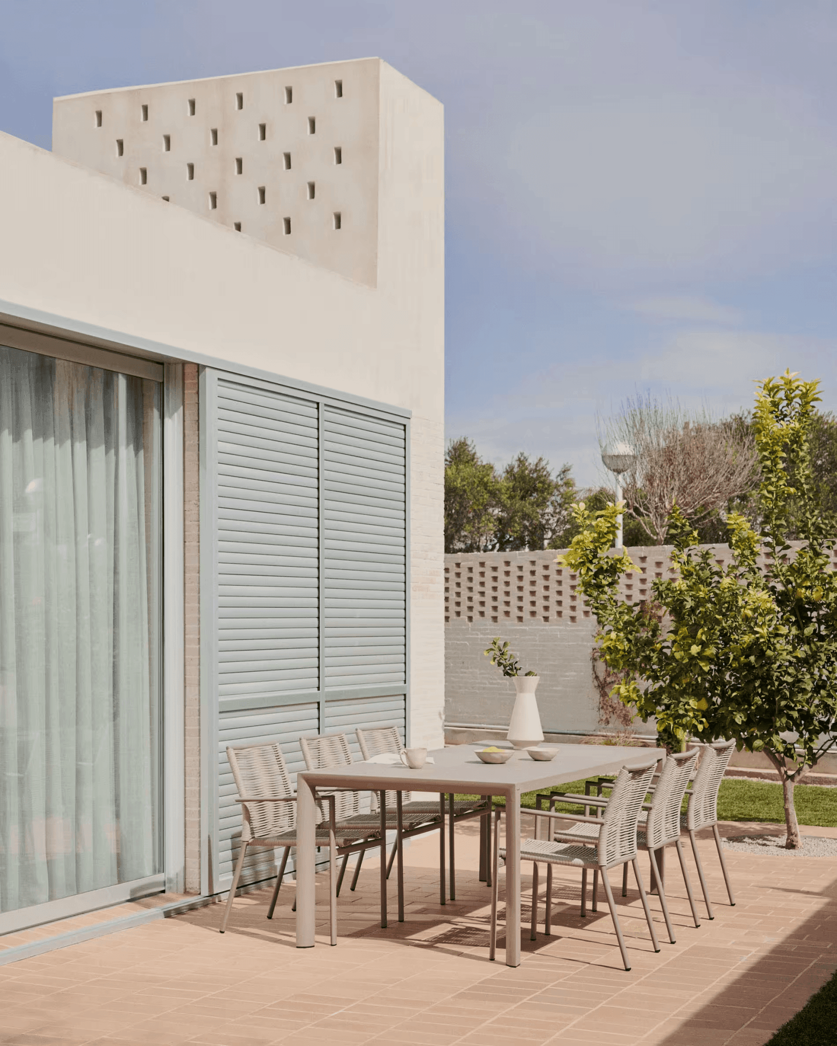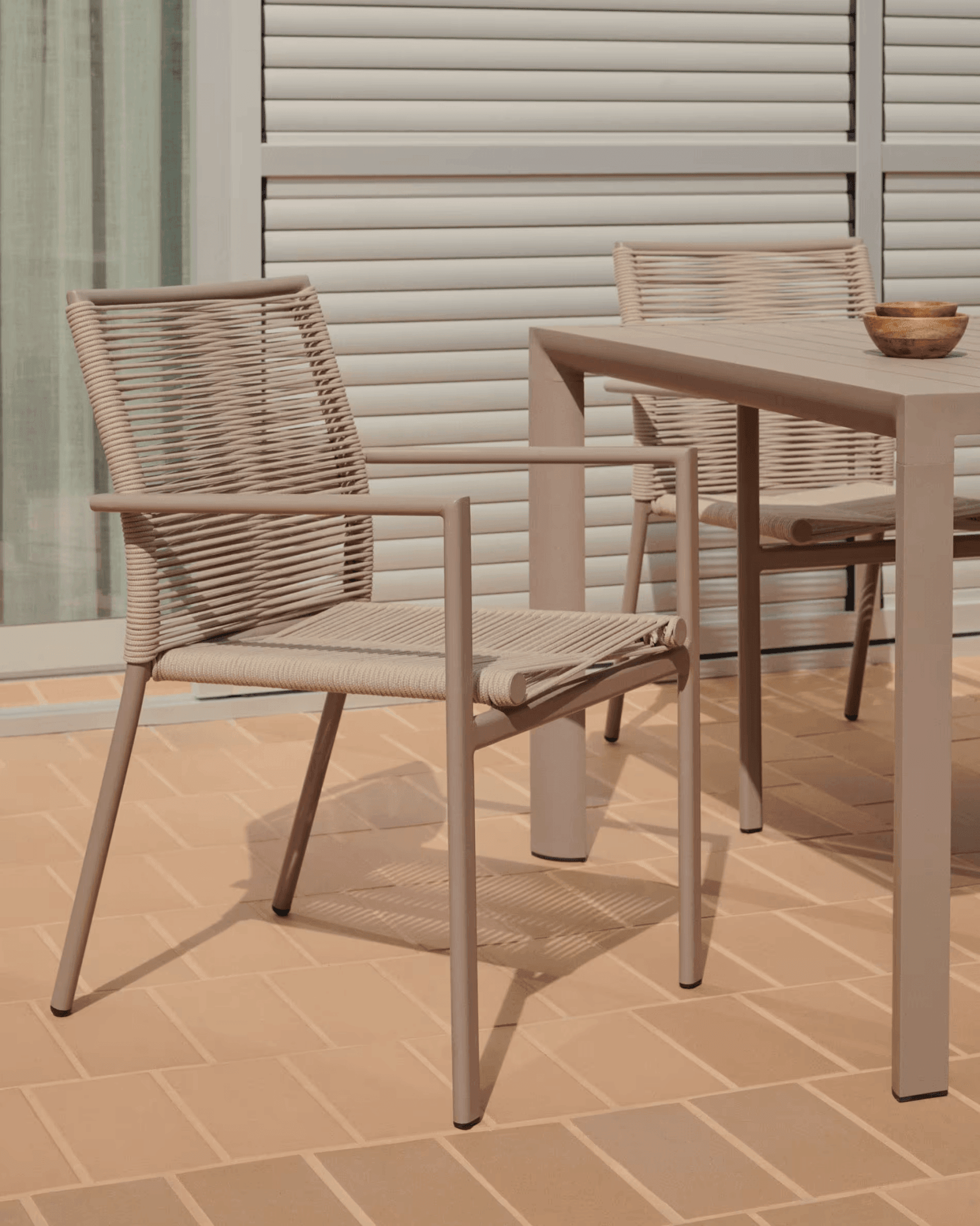 Voor maaltijden thuis of buiten, voegt de Culip-collectie een ontspannen uitstraling toe met rugleuningen en zittingen van gevlochten touw. Ideaal voor het nuttigen van maaltijden op het balkon, terras of in de tuin.