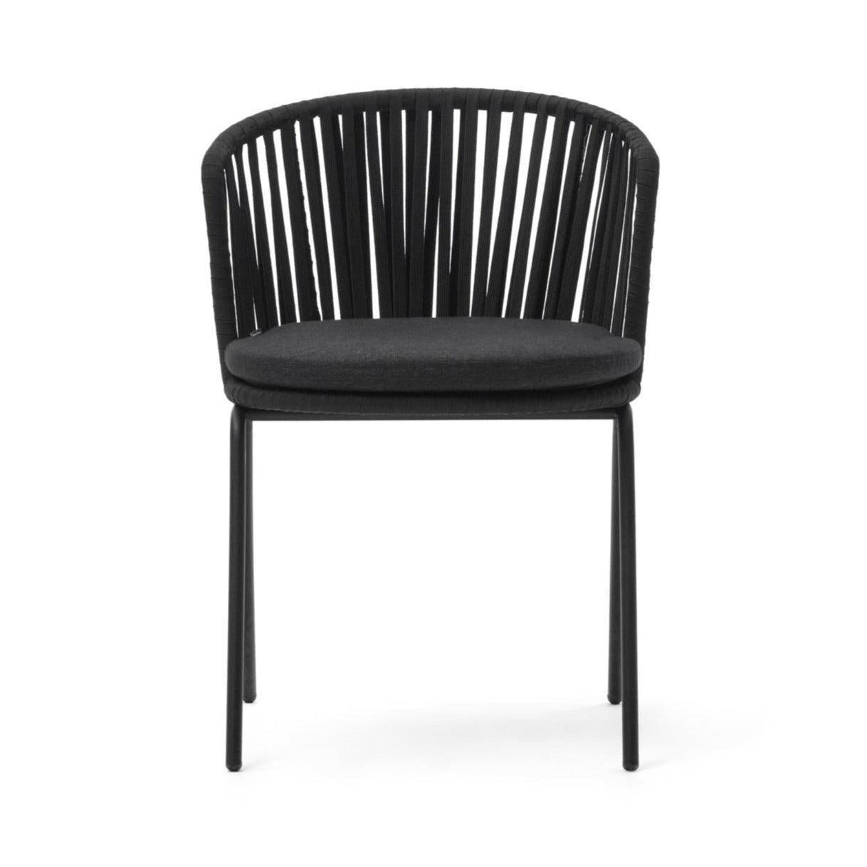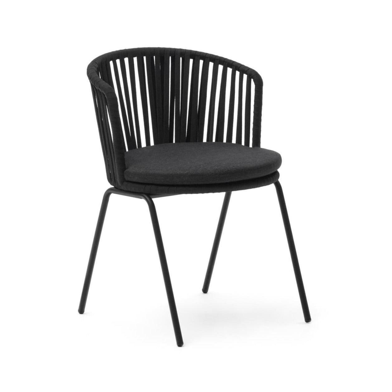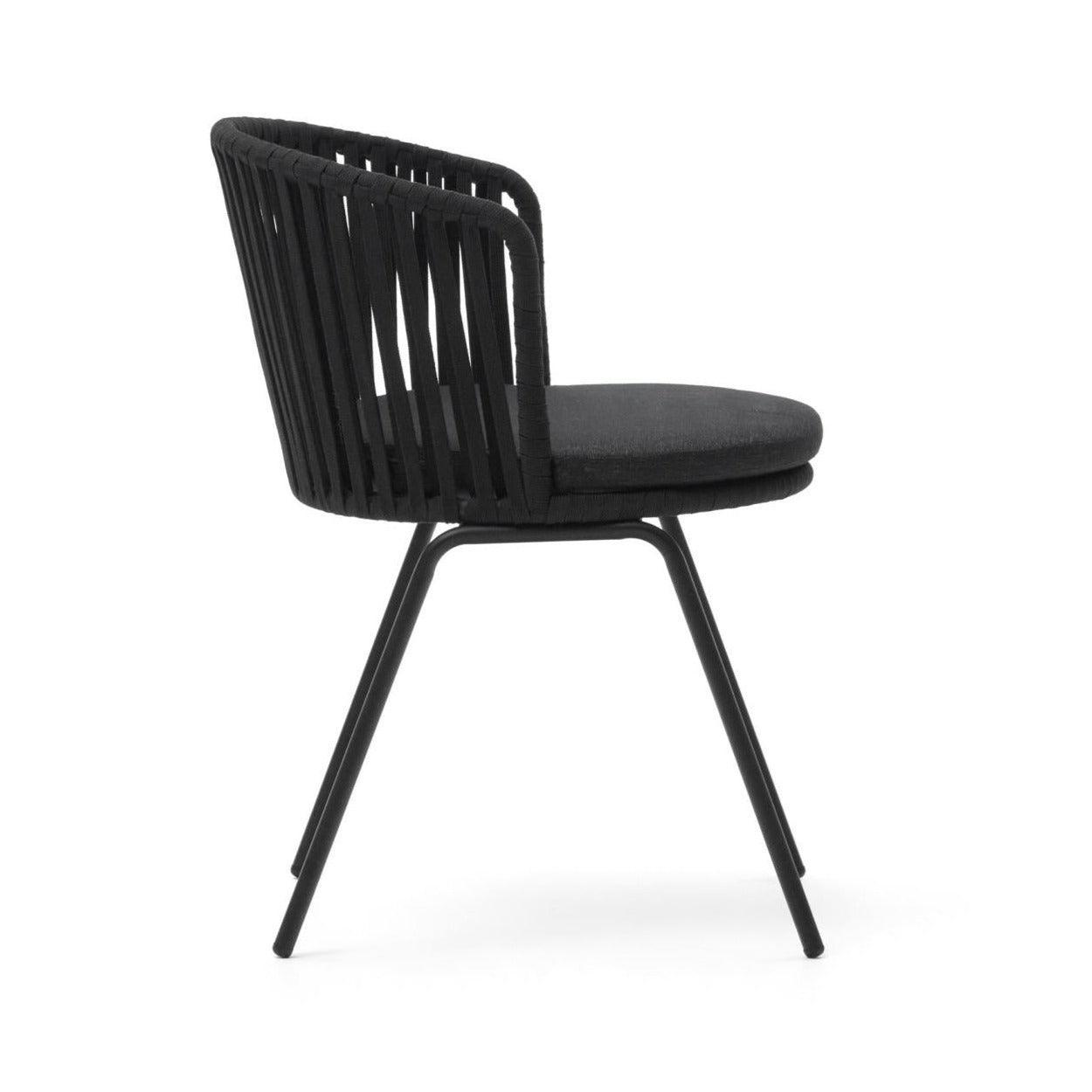 Of het nu binnen of buiten is, de Saconca stoel vergezelt uw maaltijden met een stijlvolle en frisse uitstraling dankzij de rugleuning van gevlochten touw. Perfect voor lange avonden in de tuin, op het balkon of op het terras.