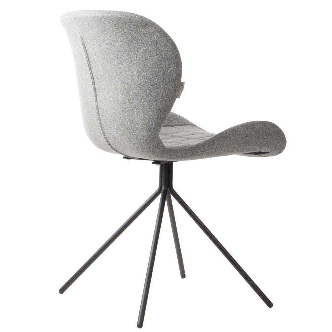 OMG is een modern stoeltje met karakter, dat betovert met zijn vorm. De opvallende zitting, bekleed met hoogwaardige lichtgrijze stof, is versierd met ruitvormige stiksels. Zowel de zitting als de rugleuning zijn zo gevormd dat ze zelfs bij langdurig gebruik comfort bieden. Het metalen frame bestaat uit vier poten die naar binnen toe samenkomen in zwart.