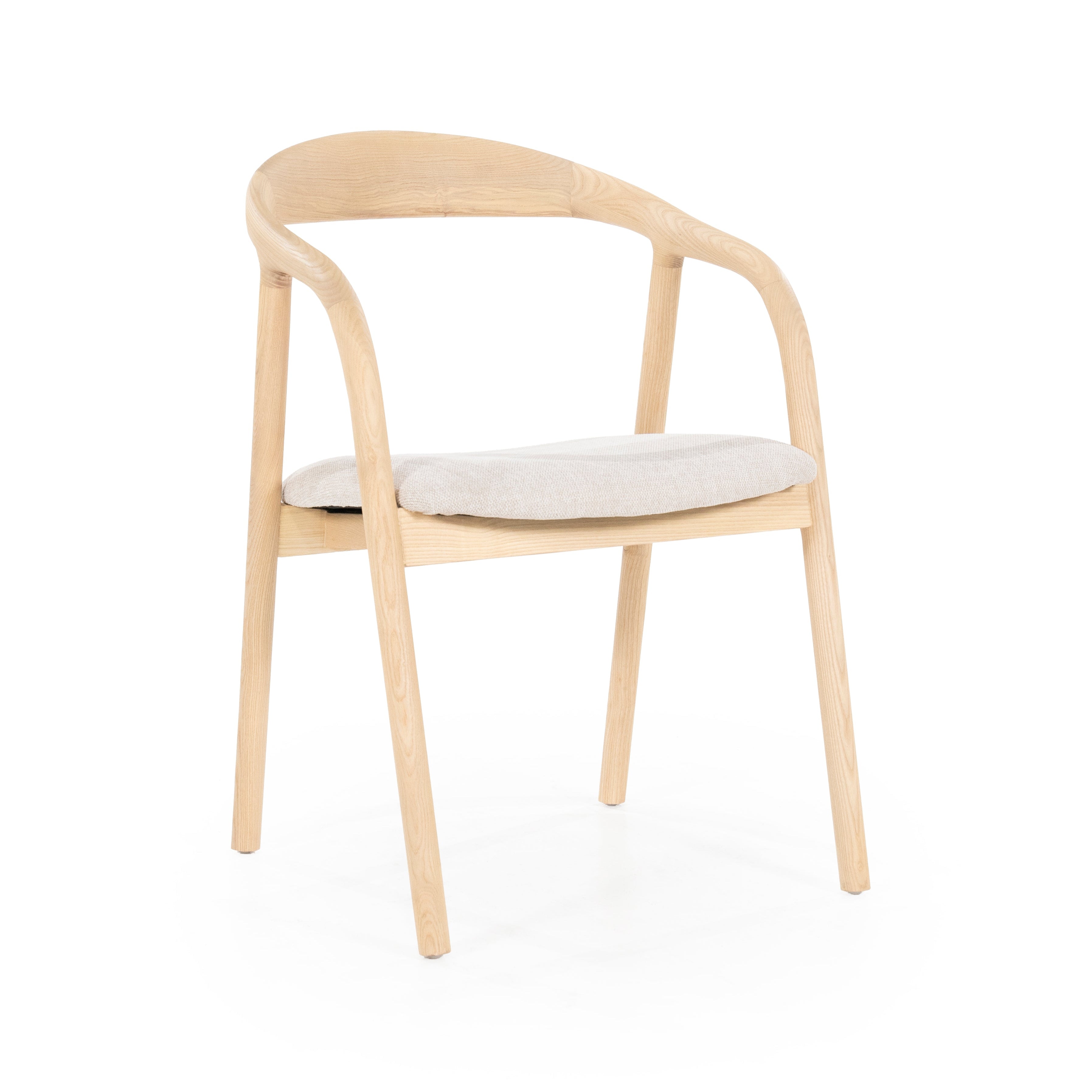 Krzesło Rayven to esencja skandynawskiego designu – prosta forma, naturalne materiały i wygoda użytkowania. Wykonane z solidnego drewna jesionowego, wykończonego lakierem ochronnym, wyróżnia się lekką i elegancką konstrukcją. Miękkie tapicerowane siedzisko w tkaninie Houston zapewnia wysoki komfort, a subtelnie wygięte oparcie z podłokietnikami nadaje całości harmonijny i nowoczesny wygląd.