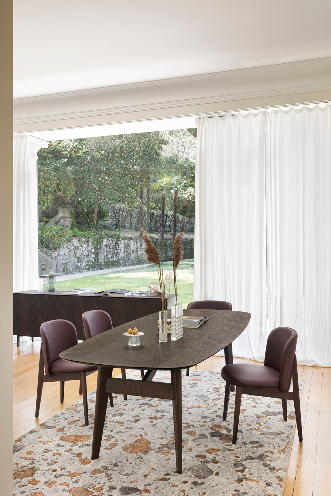 Dankzij de zorgvuldig ontworpen verhoudingen biedt stoel Abrey comfort, zelfs tijdens langere zitperiodes. Zijn universele esthetiek zorgt ervoor dat hij perfect tot zijn recht komt in moderne, klassieke en elegante restaurant- en hotelinrichtingen. Dit is een stoel die functionaliteit verbindt met een subtiele vorm, waardoor de karakter van de ruimte wordt benadrukt zonder de inrichting te domineren.