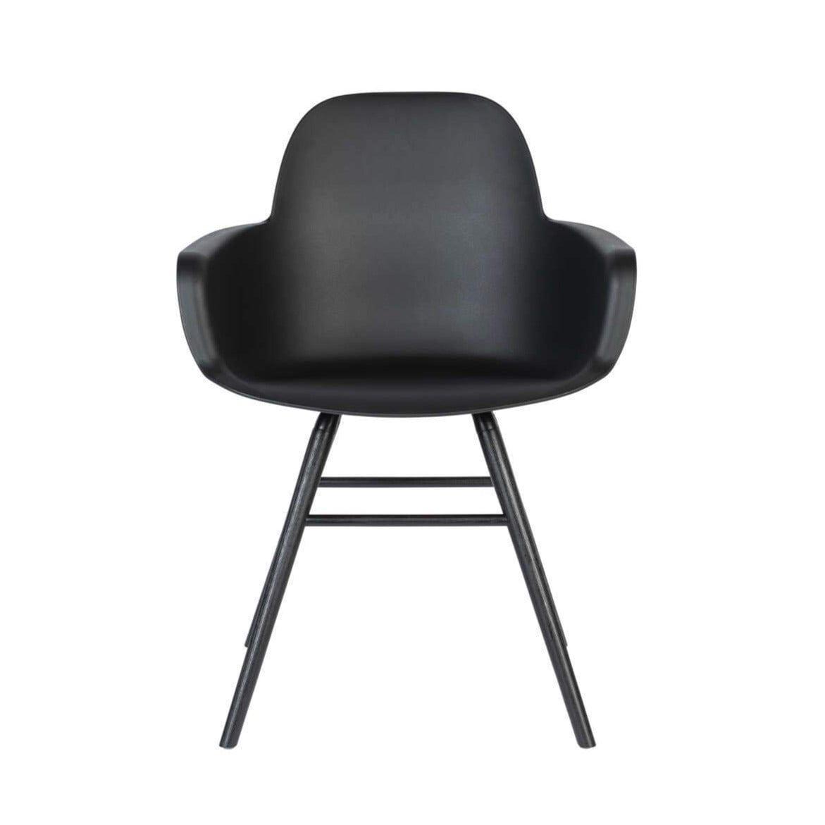 Stoel Albert Kuip, ontworpen door het Amsterdamse studio APE, is een geweldige combinatie van moderne en retro stijl. Het vloeiende zitvlak met een comfortabele rugleuning in zwart wordt ondersteund door houten, minimalistische poten van esdoornhout.