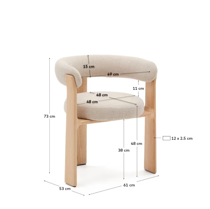 Stoel Granite is de essentie van tijdloze elegantie, geïnspireerd door de Scandinavische stijl van de jaren '70. De dikke, harmonieuze vormen en aandacht voor detail zorgen ervoor dat de stoel een uitgesproken en uniek karakter aan het interieur toevoegt. Bekleed met gerecycled polyester chenille, met een opvallende structuur en in een warme beige tint, biedt het comfort en gezelligheid.