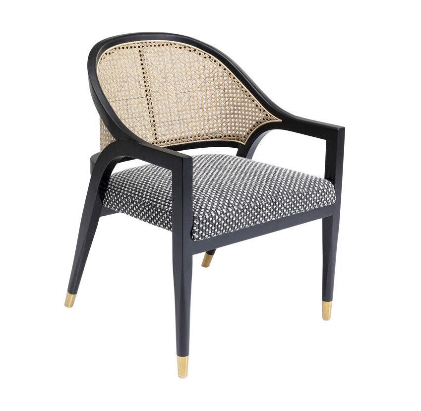 Verrijk uw woonkamer, eetkamer of hal met de stijlvolle en comfortabele stoel Horizon. Het ontwerp met een gevlochten rugleuning van riet verwijst naar de unieke stijl van traditionele Wenen cafés. Het elegante frame is moderne klassiekers. Het bijzondere uiterlijk van deze stoel wordt benadrukt door de gestructureerde bekleding in zwart en wit. De Horizon stoel kan ook zelfstandig worden gebruikt in een leeshoek, slaapkamer of hal.