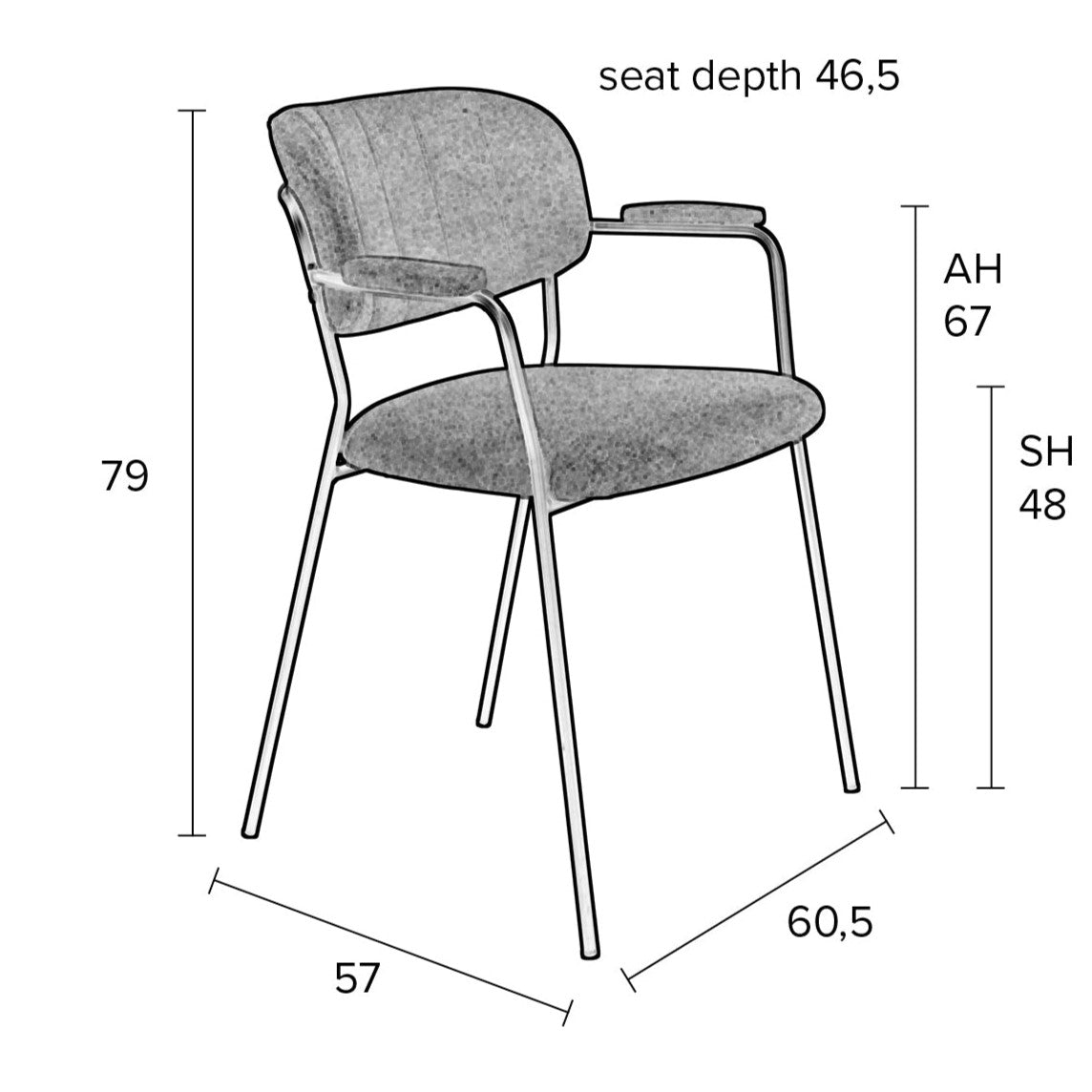 Krzesło z podłokietnikami Jolien wyróżnia się eleganckim, nowoczesnym designem. Posiada stalową ramę malowaną proszkowo na czarno oraz siedzisko i oparcie z sklejki i pianki PU, tapicerowane białą tkaniną boucle. Oparcie jest lekko wygięte i pikowane, co zwiększa komfort. Tapicerowane podłokietniki wspierają prawidłową postawę. Idealne do kuchni, jadalni oraz bardziej reprezentacyjnych pomieszczeń, takich jak salon czy pokój gościnny.