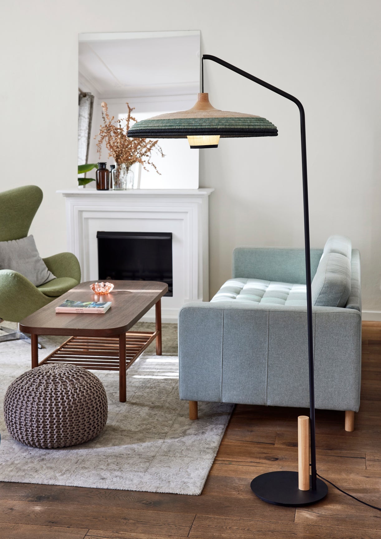 Czarna metalowa rama lampy podłogowej Grass została wzbogacona ozdobnym detalem z drewna, dodając jej ciepła i elegancji. To połączenie trwałych, naturalnych materiałów i rzemieślniczej precyzji czyni lampę idealnym wyborem do wnętrz inspirowanych naturą i organicznymi kształtami. Projekt, stworzony dla francuskiego producenta Forestier, wprowadza do przestrzeni przytulność i osobowość, zgodnie z filozofią Jette Scheib, która w swoich dziełach stawia na dobrostan i harmonię.