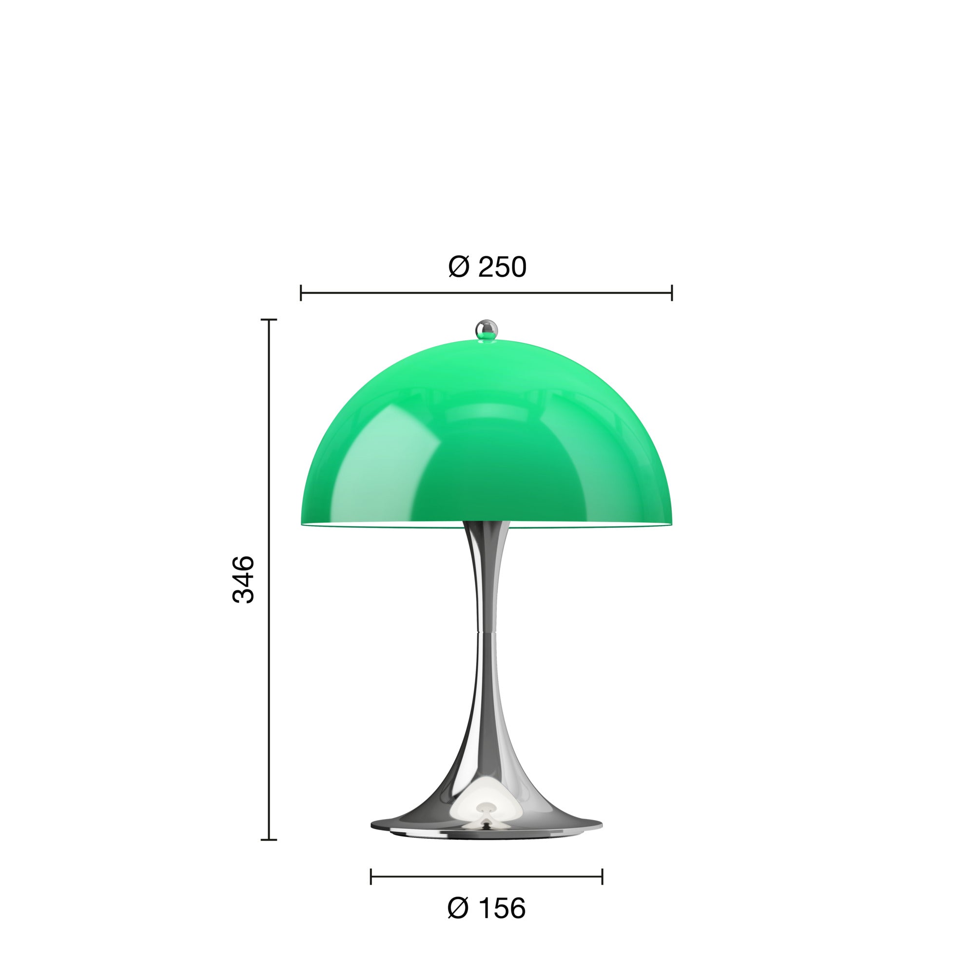 Draagbare lamp PANTHELLA 250 groen met verchroomde voet