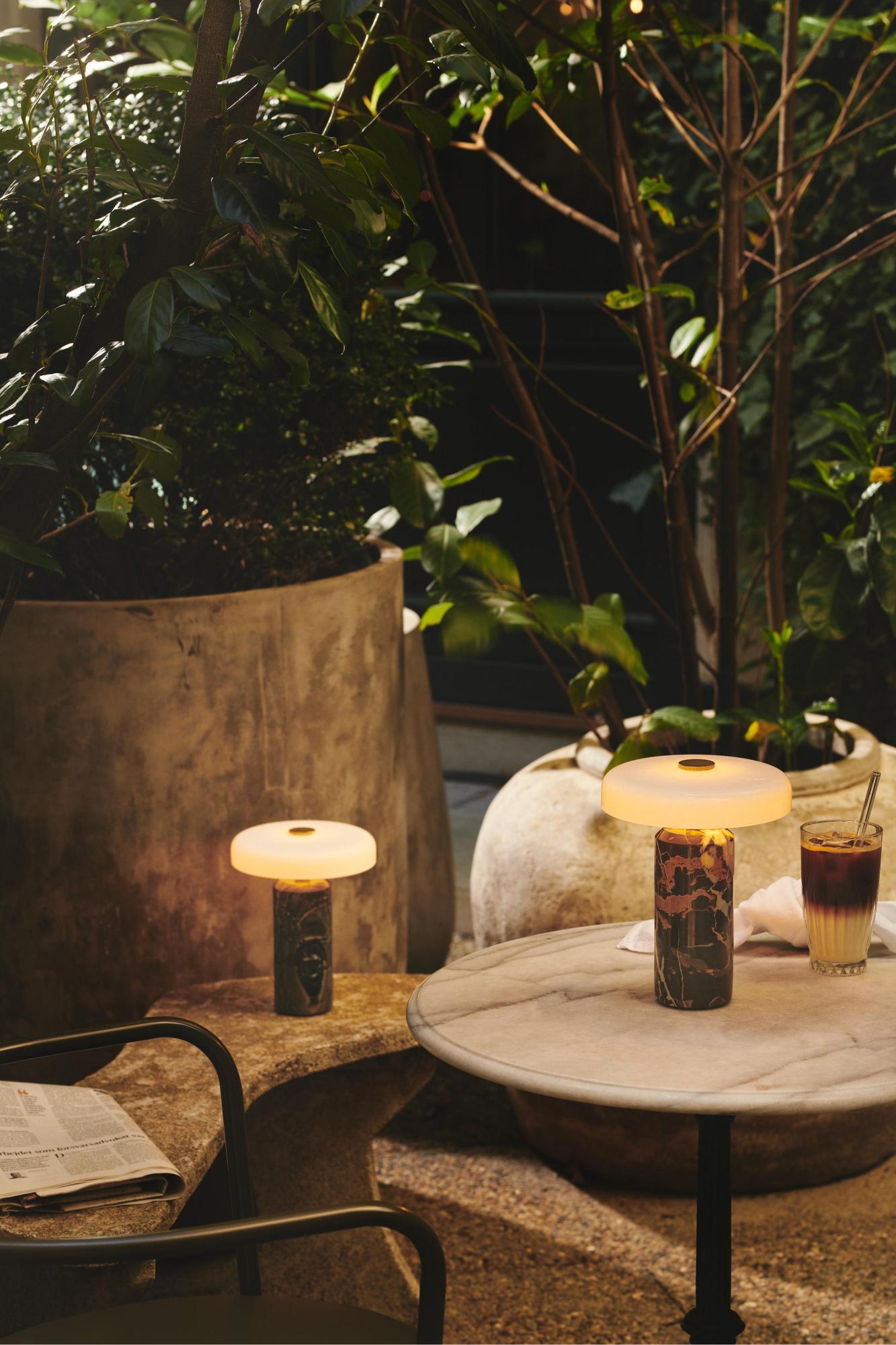 Gemaakt van gepolijst marmer en handgeblazen glas, lamp Trip combineert natuurlijke materialen met verfijnde details. Hij is uitgerust met een aanraakgevoelige, driedelige dimmer, zodat u de lichtintensiteit eenvoudig kunt aanpassen aan de situatie – van een intieme avond tot functionele verlichting tijdens een bijeenkomst. De lange batterijduur en zorgvuldige afwerking maken de draagbare lamp Trip zowel een praktisch lichtpunt als een stijlvolle decoratieve aanvulling.