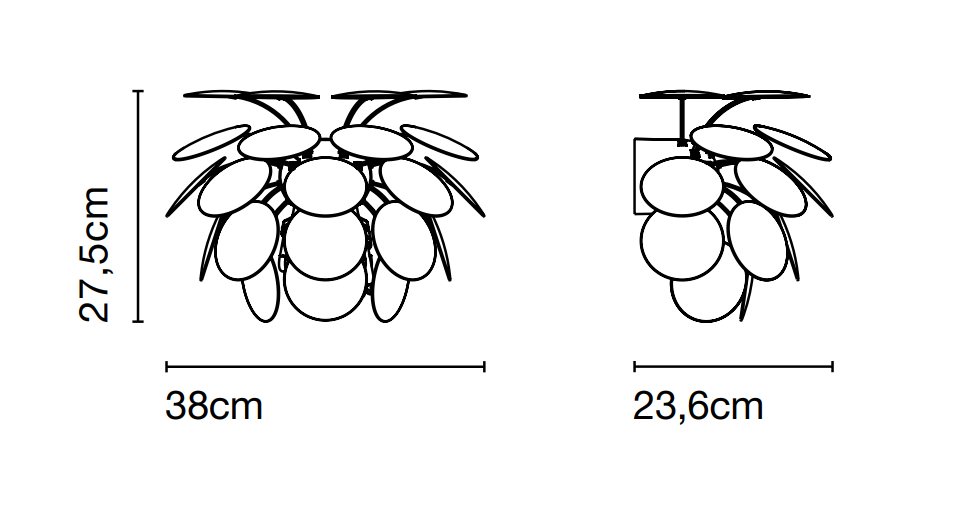 De wandlamp heeft een diameter van 38 cm en is verkrijgbaar in wit en goud-zwart. In al zijn versies biedt de Discocó-collectie een buitengewoon gezellige verlichting.