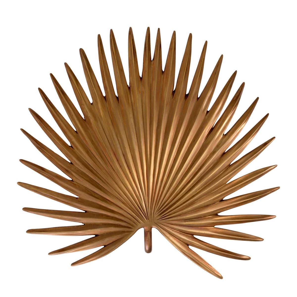 Piękny mosiężny klosz w kształcie liścia palmy, nawiązujący do stylu vintage, tworzy na ścianie urzekający wzór światła, który dodaje pomieszczeniu przyjemnej atmosfery i wyjątkowej estetyki. Mosiężna lampa ścienna Foliage mosiężny nie tylko doskonale oświetla przestrzeń, ale także stanowi wyrazisty element dekoracyjny, który przyciąga wzrok i nadaje wnętrzu unikalnego charakteru.