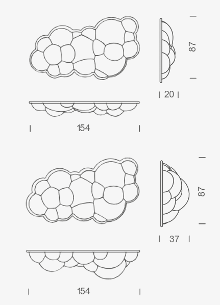 Lampa wisząca Nuvola została zaprojektowana przez Mario Belliniego w 1974 roku dla 'Pianeta Ufficio'. Ta metafizyczna kolekcja, wyróżniająca się silnym wizualnym oddziaływaniem, została stworzona metodą formowania rotacyjnego, co umożliwia rozproszenie światła w zakresie 360°. Lampa Nuvola łączy unikalny design z funkcjonalnością, dodając elegancji i wyjątkowego charakteru każdemu wnętrzu.