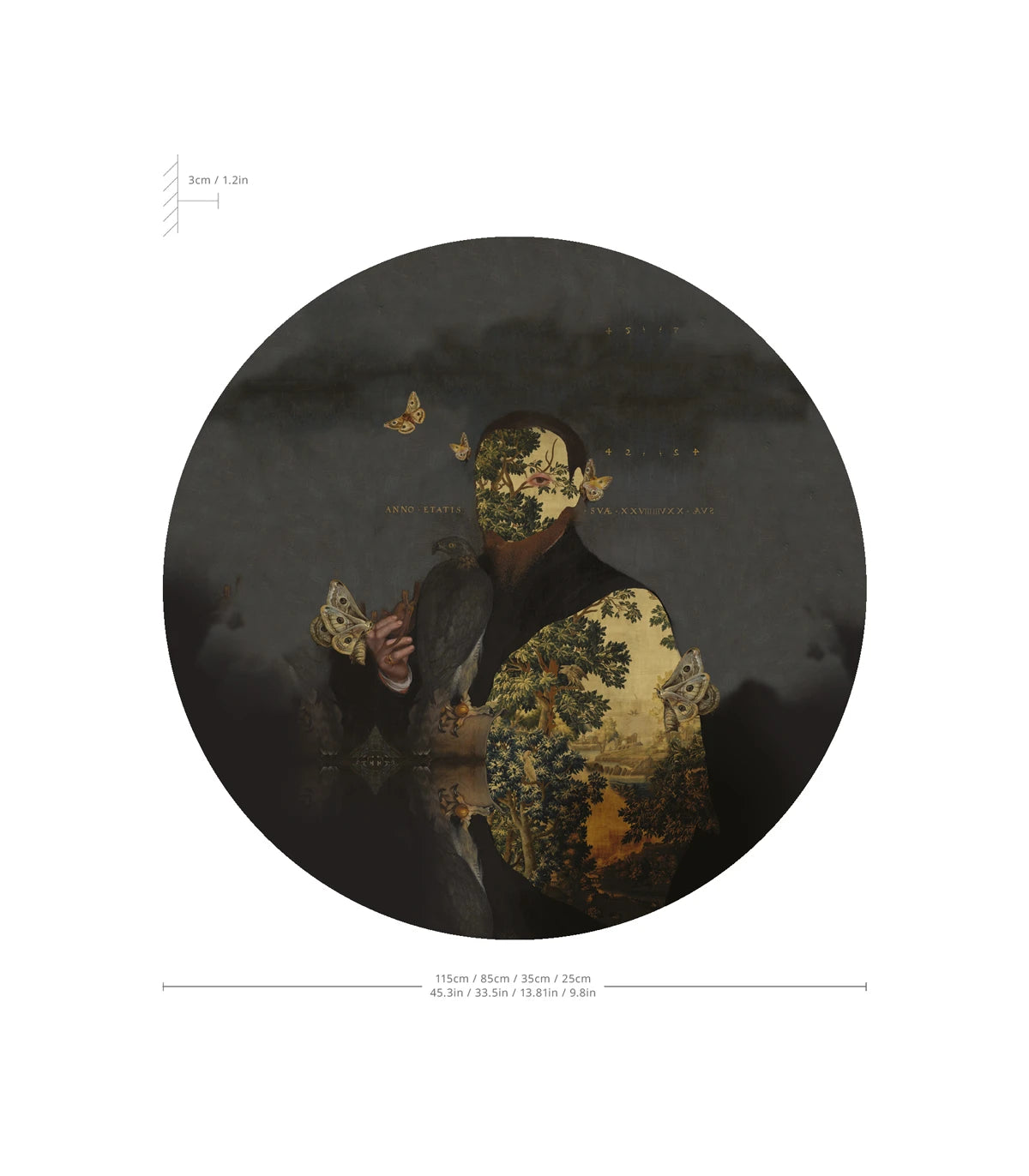 Wandlamp Dots Lighting Gentleman Moth is een ontwerpdecoratie die met artistieke finesse een klassieke portretstijl verbindt met natuurmotieven en een subtiele aura van mysterie. De gestileerde silhouette van een man met een plantaardig lichaam en omringende vlinders symboliseert transformatie, vergankelijkheid en de kracht van verbeelding, waardoor een compositie ontstaat met een diepe, bijna surrealistische expressie.
