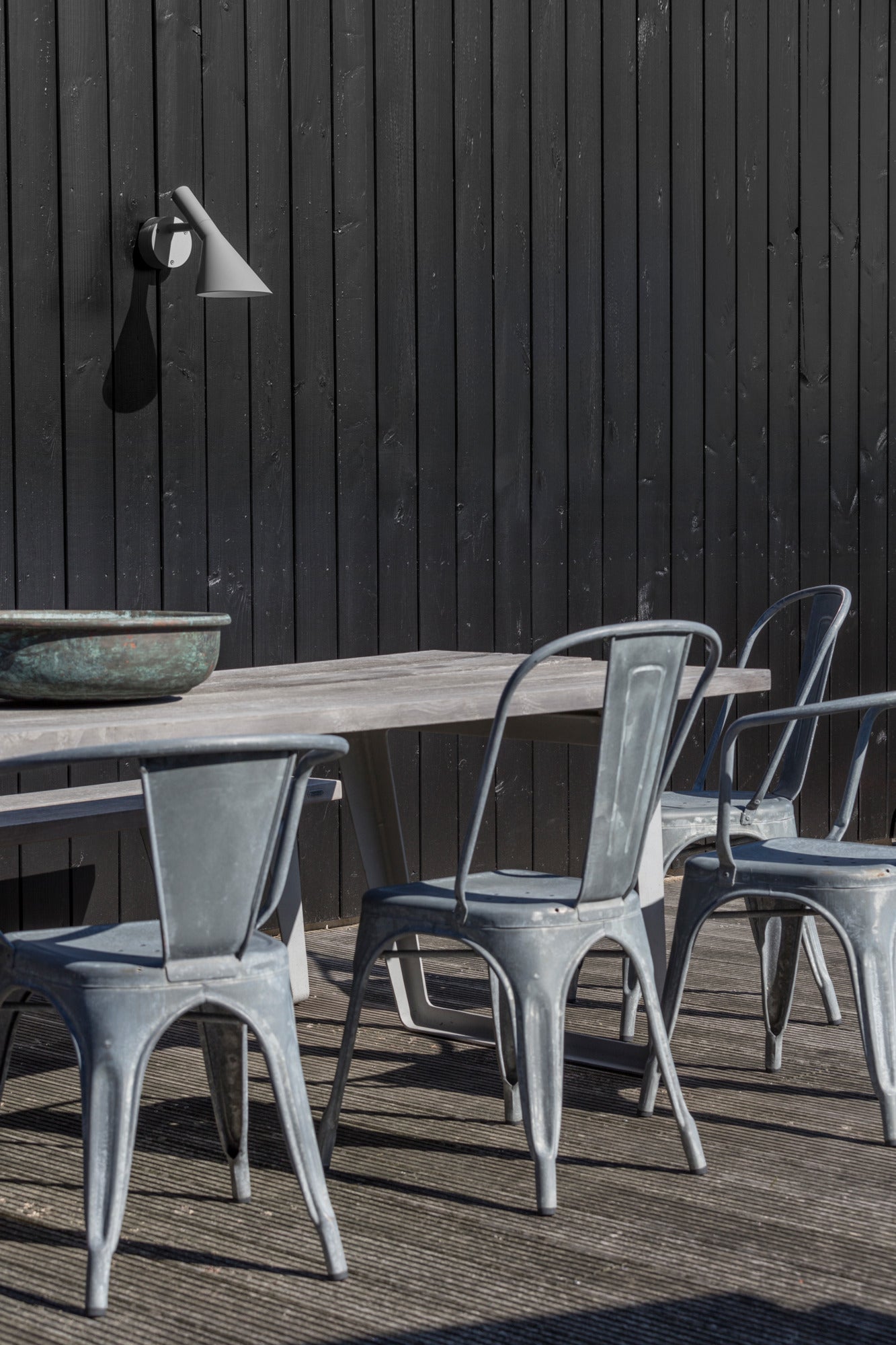 Wandlamp AJ 50 is een elegante en functionele lamp voor buiten, ontworpen ter gelegenheid van de 50e verjaardag van de iconische lampenfamilie AJ van Arne Jacobsen. Op basis van het originele ontwerp dat voor het SAS Royal Hotel in Kopenhagen is gemaakt, is er een versie ontwikkeld die geschikt is voor buitenverlichting, waarbij de kenmerkende, minimalistische vorm behouden blijft. Wandlamp straalt licht naar beneden, en de witte binnenkap zorgt voor een aangename, zachte verspreiding van het licht, ideaal om ingangen, terrassen, gevels en tuinpaden te accentueren.