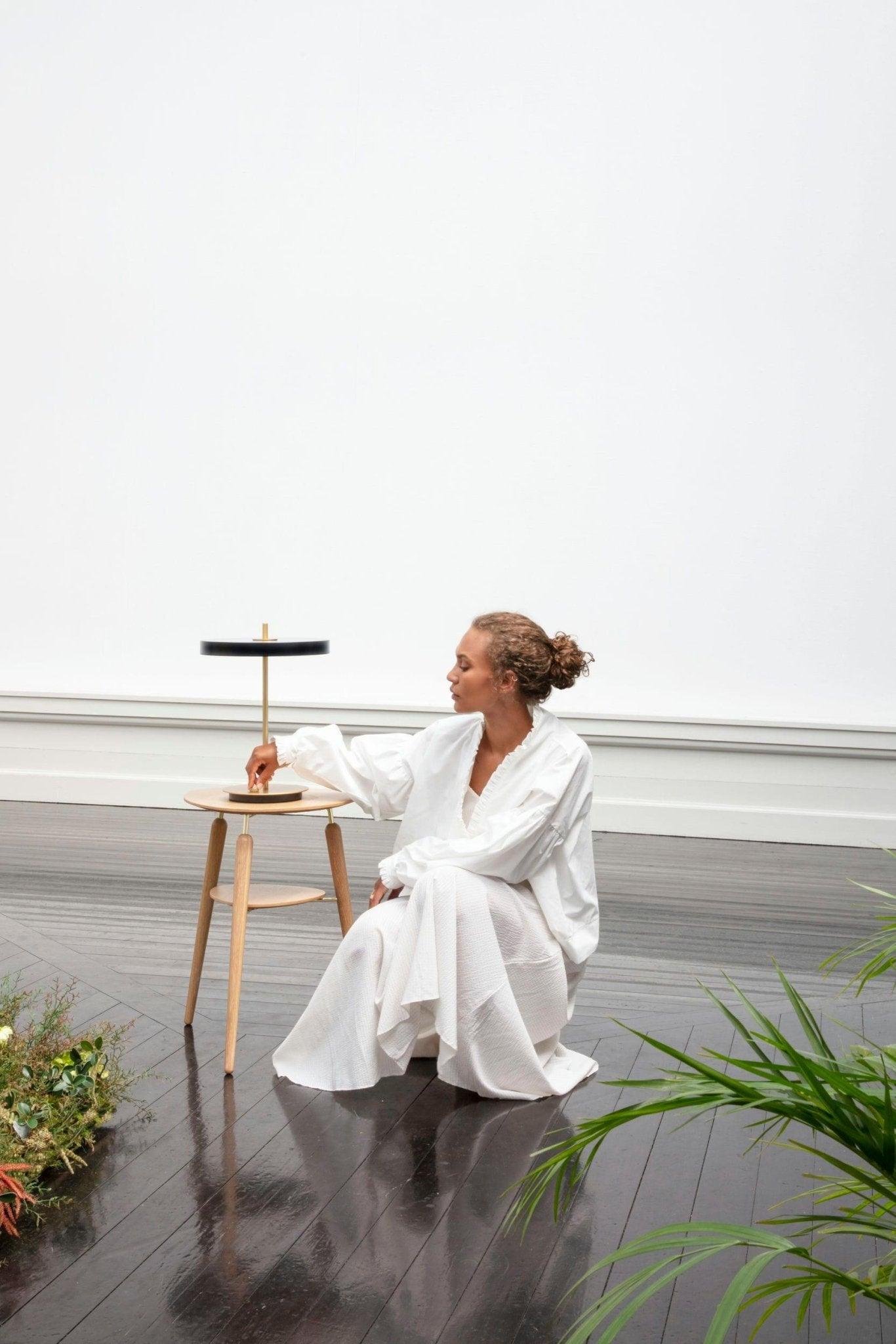 Bureau lamp Asteria is een uniek decoratie-element, uitgerust met een ingebouwd LED-paneel met diffuser, dat zorgt voor een zachte verlichting van de ruimte. De messing voet die door de lamp loopt, voegt elegantie en stevigheid toe aan de gehele constructie, waardoor deze een compacte uitstraling krijgt.