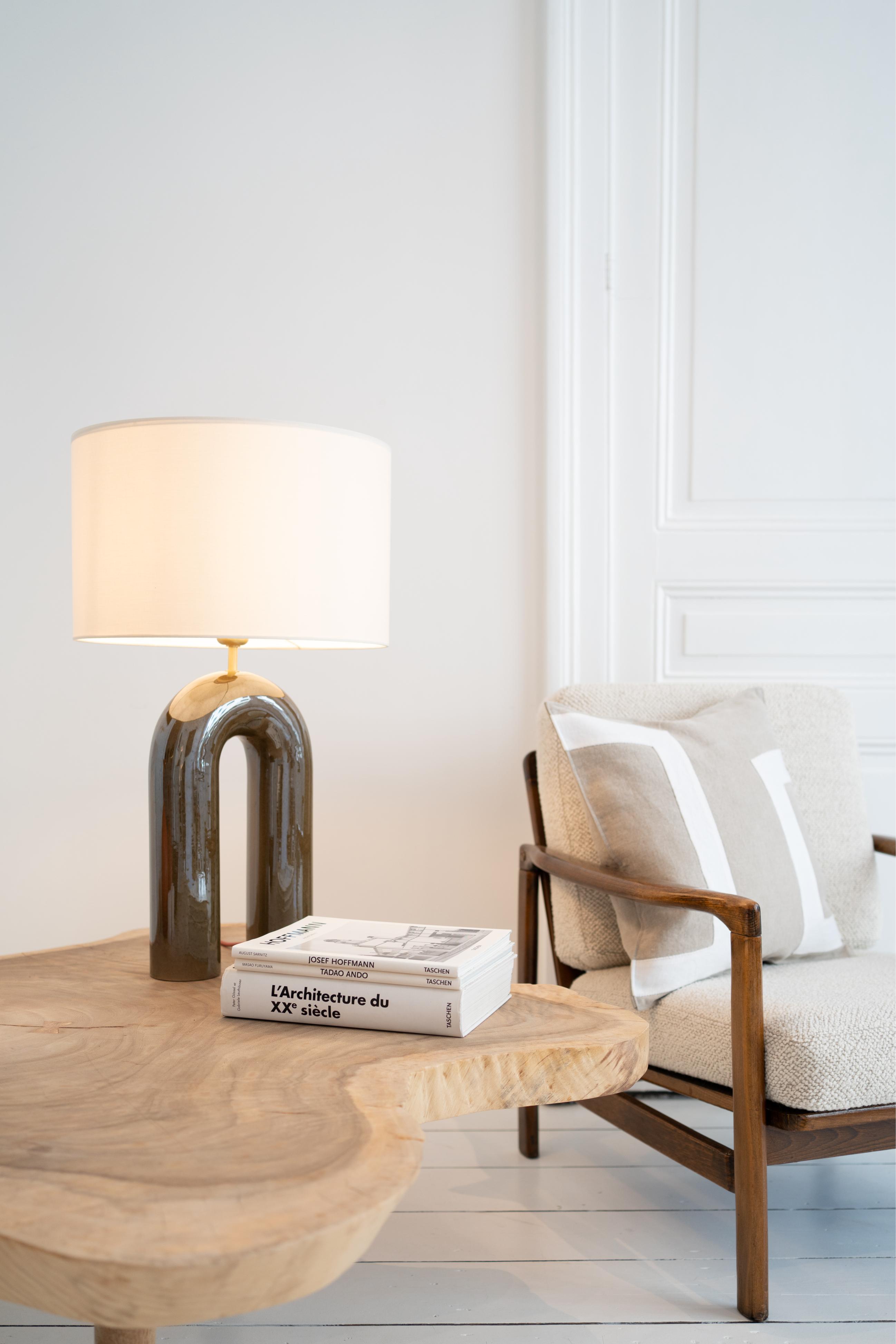 Keramische tafellamp Arko is een iconisch ontwerp geïnspireerd op de beroemde Brug van Negen Booggen in Sri Lanka. De kenmerkende boogvorm, gecombineerd met een unieke katoenen lampenkap, creëert een uitzonderlijke compositie van licht en sculptuur. Het harmonieus verspreide licht en de twee afwerkingsopties – keramiek of marmer – maken het zowel een lichtbron als een designaccent in elk interieur. Dit is een tafellamp die de aandacht trekt en de ruimte definieert.