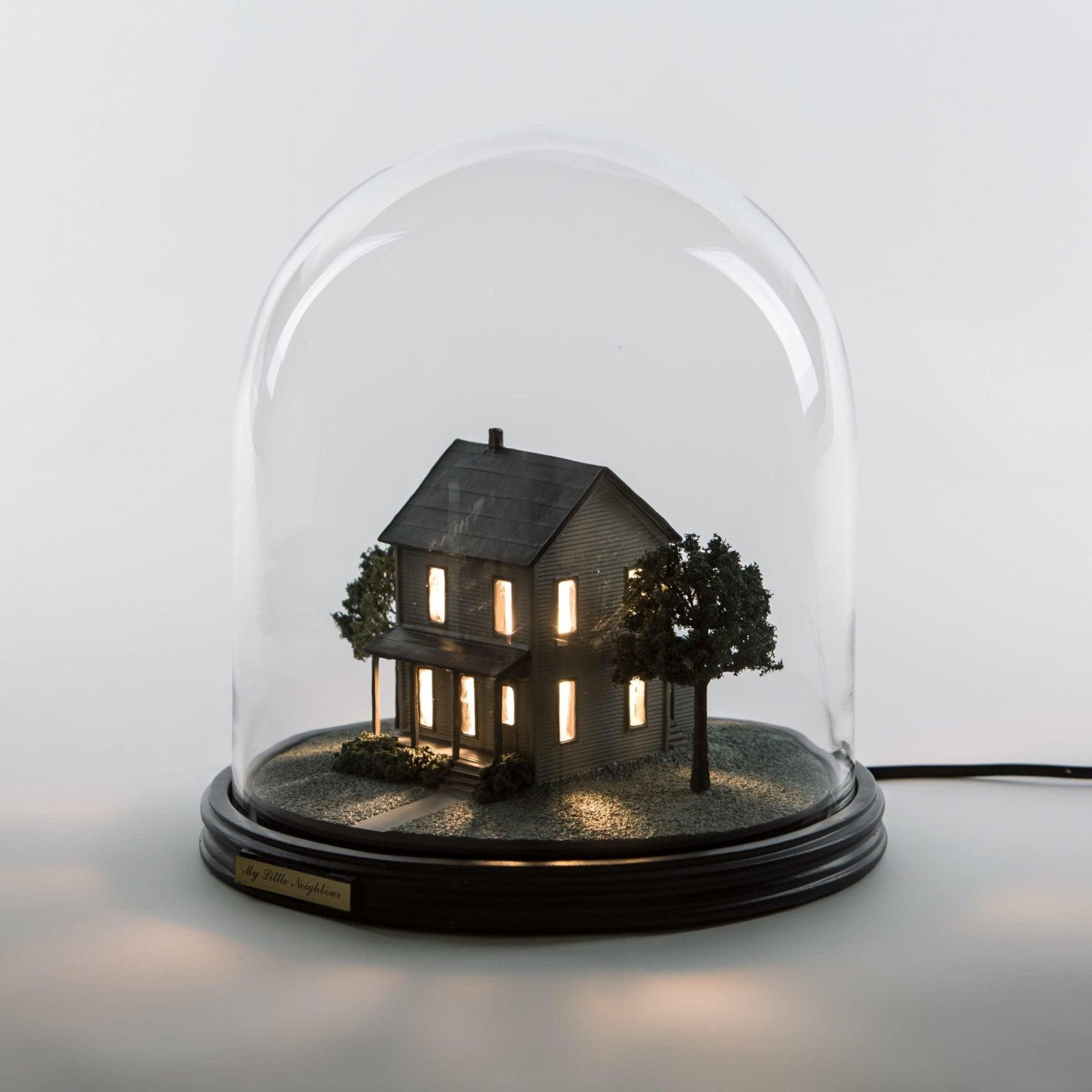 My Little Neighbour to niezwykła scena pod kopułą przedstawiająca mały domek o zachodzie słońca, który staje się jednocześnie żywym i niemal surrealistycznym miejscem. Zagęszczające się wątki i unoszące się w powietrzu tajemnice są rdzeniem tej niepowtarzalnej i enigmatycznej lampy dekoracyjnej.