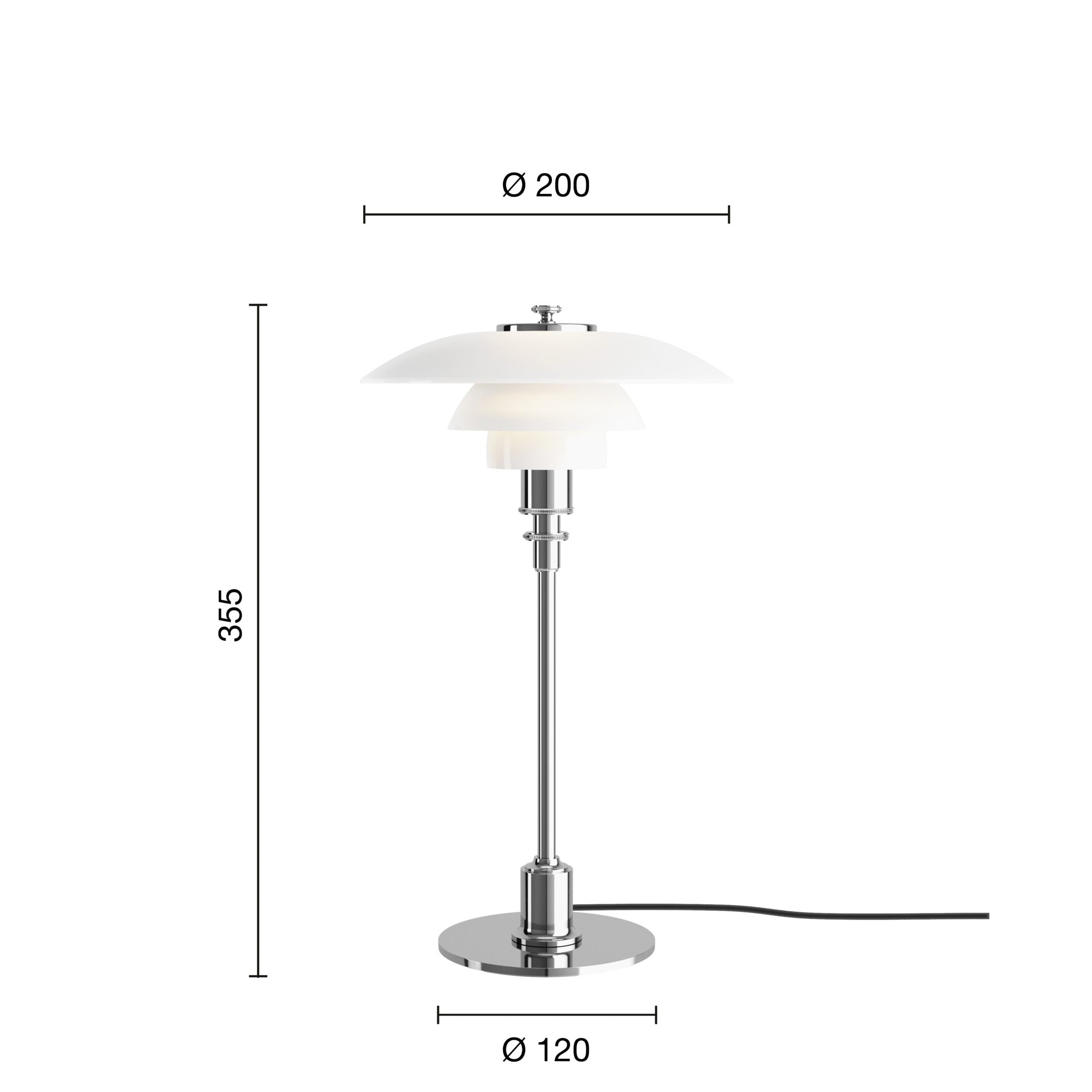 Tafellamp PH 2/1 is een klassiek meesterwerk van Poul Henningsen, ontworpen op basis van zijn beroemde driekap-systeem uit 1925, dat volledig verblindingsvrij licht en zachte, harmonieuze verlichting biedt. De kappen van driedelig, geblazen opaalglas richten het licht voornamelijk naar beneden, waardoor een aangename, gelijkmatige gloed ontstaat. Dankzij de tijdloze vorm en uitstekende verhoudingen is de tafellamp PH 2/1 een elegante aanvulling op een bureau, dressoir of nachttafeltje – zowel in klassieke als moderne interieurs.
