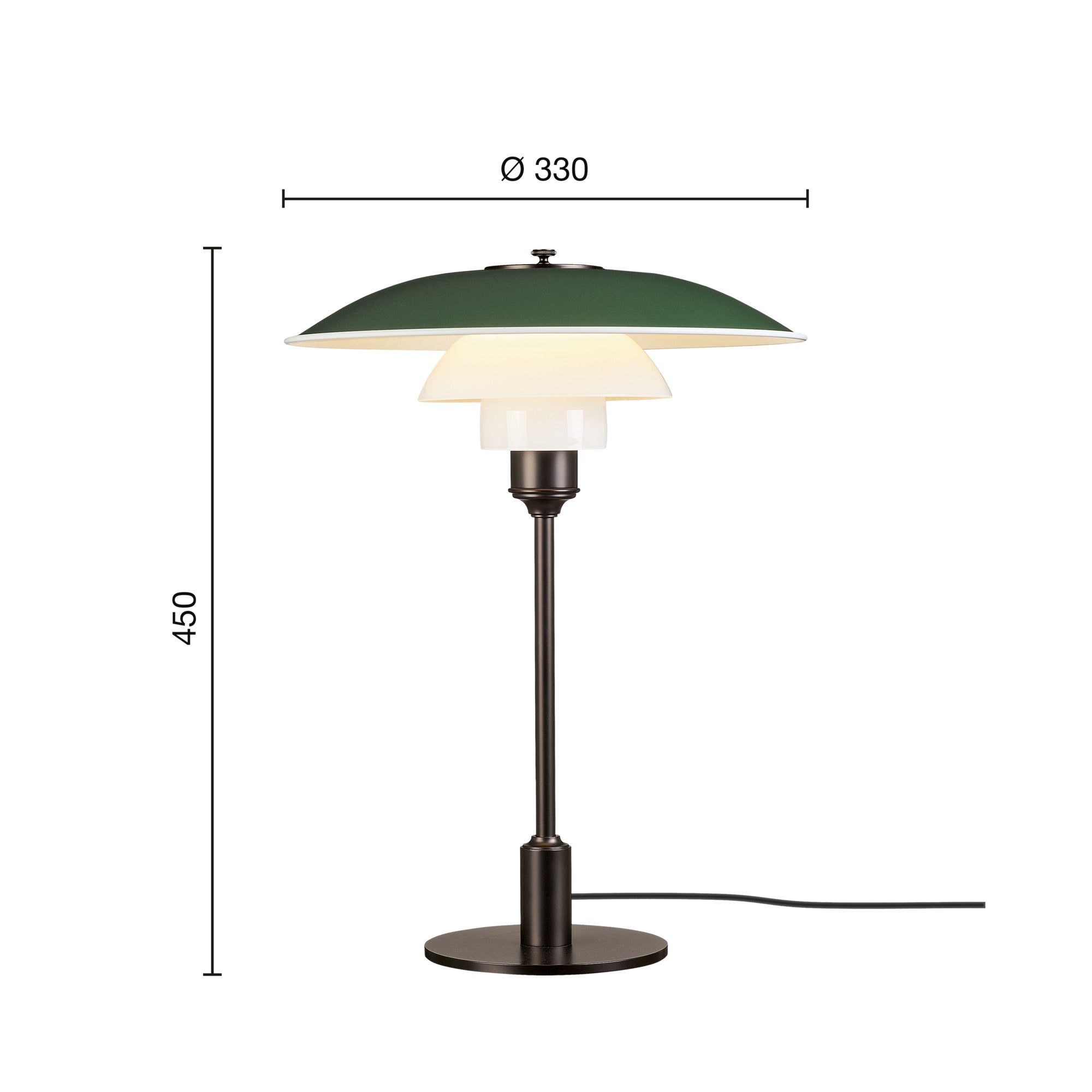 Tafellamp PH 3½-2½ is een klassiek ontwerp van Poul Henningsen uit 1928, dat een uitbreiding vormt van zijn beroemde driekap systeem van verlichting. Het is ontworpen om licht te creëren dat volledig vrij is van verblinding, terwijl het tegelijkertijd een zachte, aangename uitstraling behoudt. De bovenste metalen kap met een gerolde rand geeft de lamp een elegante uitstraling en verhoogt de optische stabiliteit, terwijl de twee onderste kappen van handgeblazen opaalglas het licht gelijkmatig verspreiden. Hierdoor biedt de tafellamp de ideale verlichting voor lezen, werken of ontspannen, terwijl het tegelijkertijd een uitzonderlijk gezellige sfeer creëert.