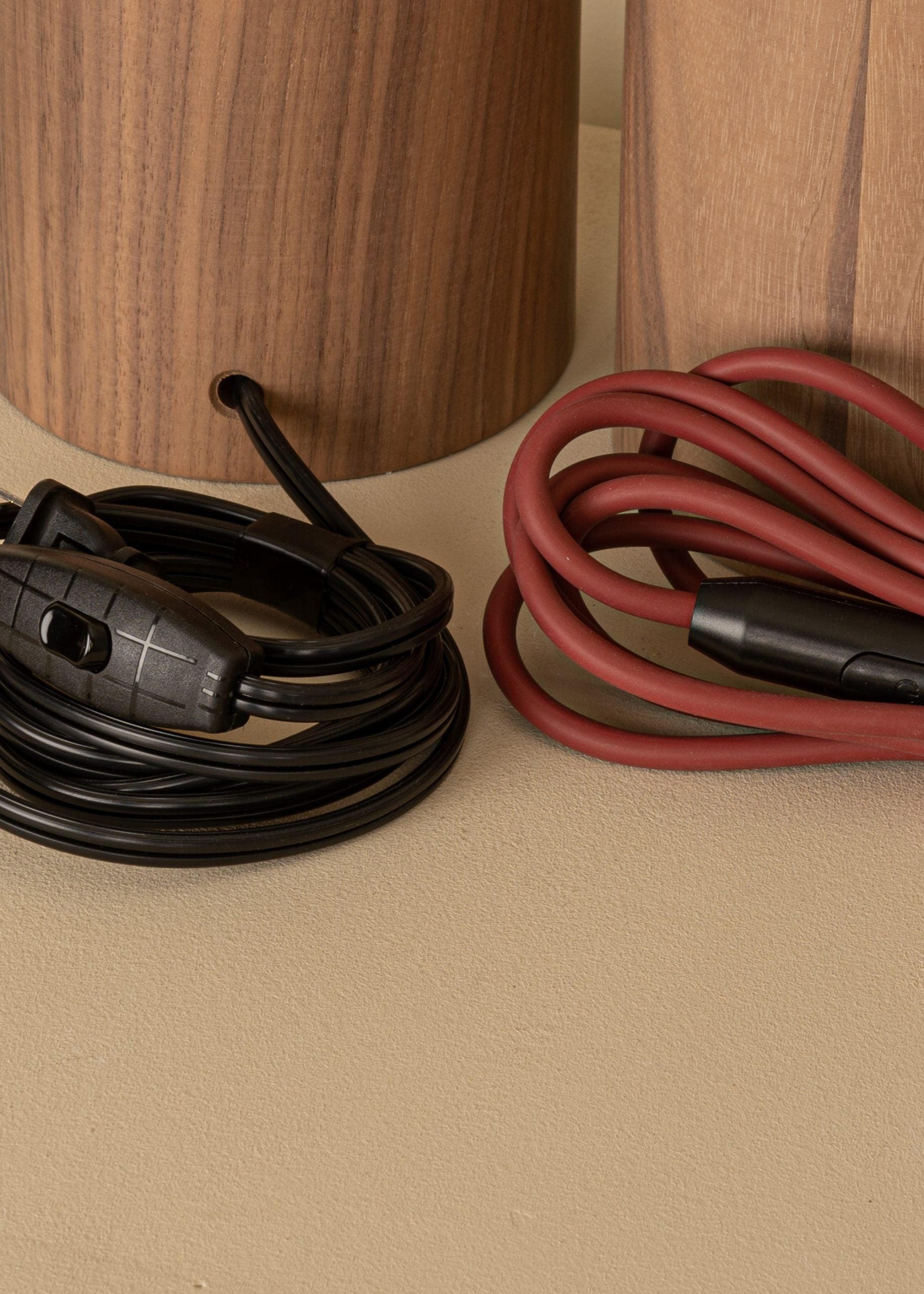 Hout als basismateriaal zorgt ervoor dat elke tafellamp een uniek patroon van nerven en natuurlijke tinten heeft. Dankzij de doordachte proporties en details, zoals de keuze van de kleur van het snoer (rood of zwart), past de tafellamp Pura Kelo Duoble perfect in moderne, Scandinavische of minimalistische inrichtingen.