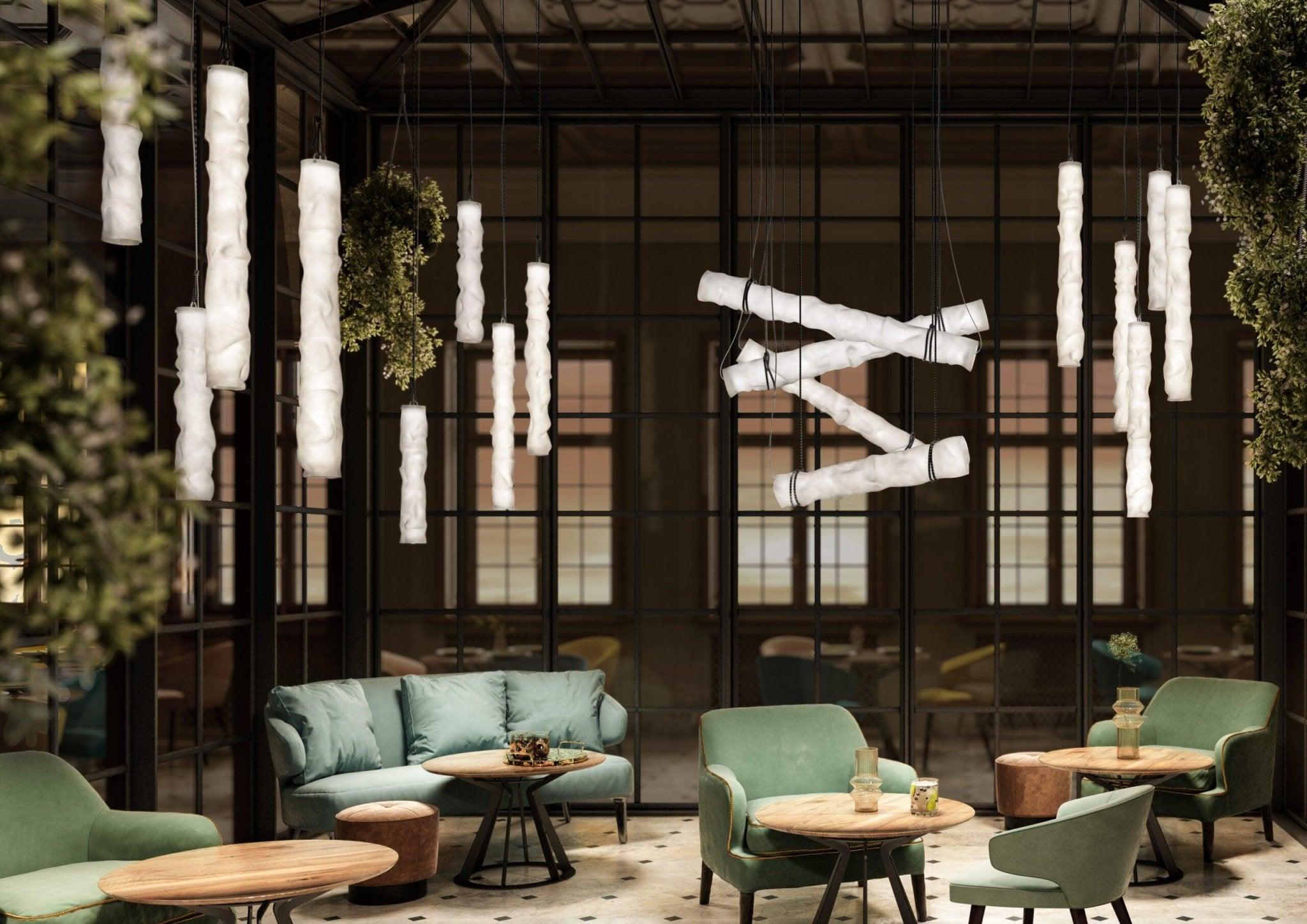 Hanglamp Baggy Vertical heeft een dubbel satijnen diffuser van polycarbonaat met een onregelmatige uitstraling van een gekreukte papieren buis, en de basis is afgewerkt in grijs.Wat Baggy bijzonder maakt, is de organische vorm, die een op maat gemaakte LED bevat die op een magische en onverwachte manier licht uitstraalt.