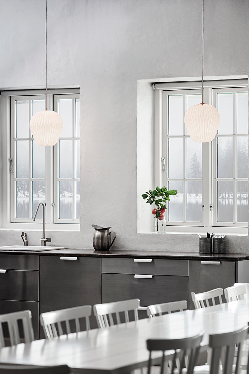 Lamp is beschikbaar als enkele hanglamp, maar ook als kroonluchter met drie, vijf of zeven kappen. Dit is een uitstekende optie voor wie op zoek is naar elegante, maar subtiele verlichting die harmonie en warmte in de ruimte brengt.