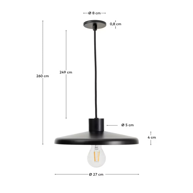 Details in satijn nikkel en chroom voegen een verfijnde uitstraling toe, terwijl de zwarte kabel met textielomhulsel de elegantie van het ontwerp benadrukt. Metalen lamp Nuvira is compatibel met een E27-lamp van maximaal 40 W (niet inbegrepen), wat volledige aanpassing van de sfeer in uw interieur mogelijk maakt.