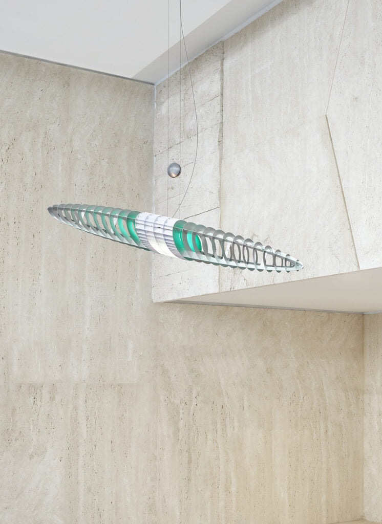 Met vijf verwisselbare polycarbonaatfilters kunt u de kleur van de aluminium behuizing van de lamp aanpassen zonder de kwaliteit van het witte licht te beïnvloeden. Deze filters zijn apart verkrijgbaar, wat volledige personalisatie van de lamp mogelijk maakt. De lichte, maar stevige constructie maakt het mogelijk om de Queen Titania op verschillende oppervlakken te hangen, waaronder schuine plafonds en gipsen en houten plafonds.
